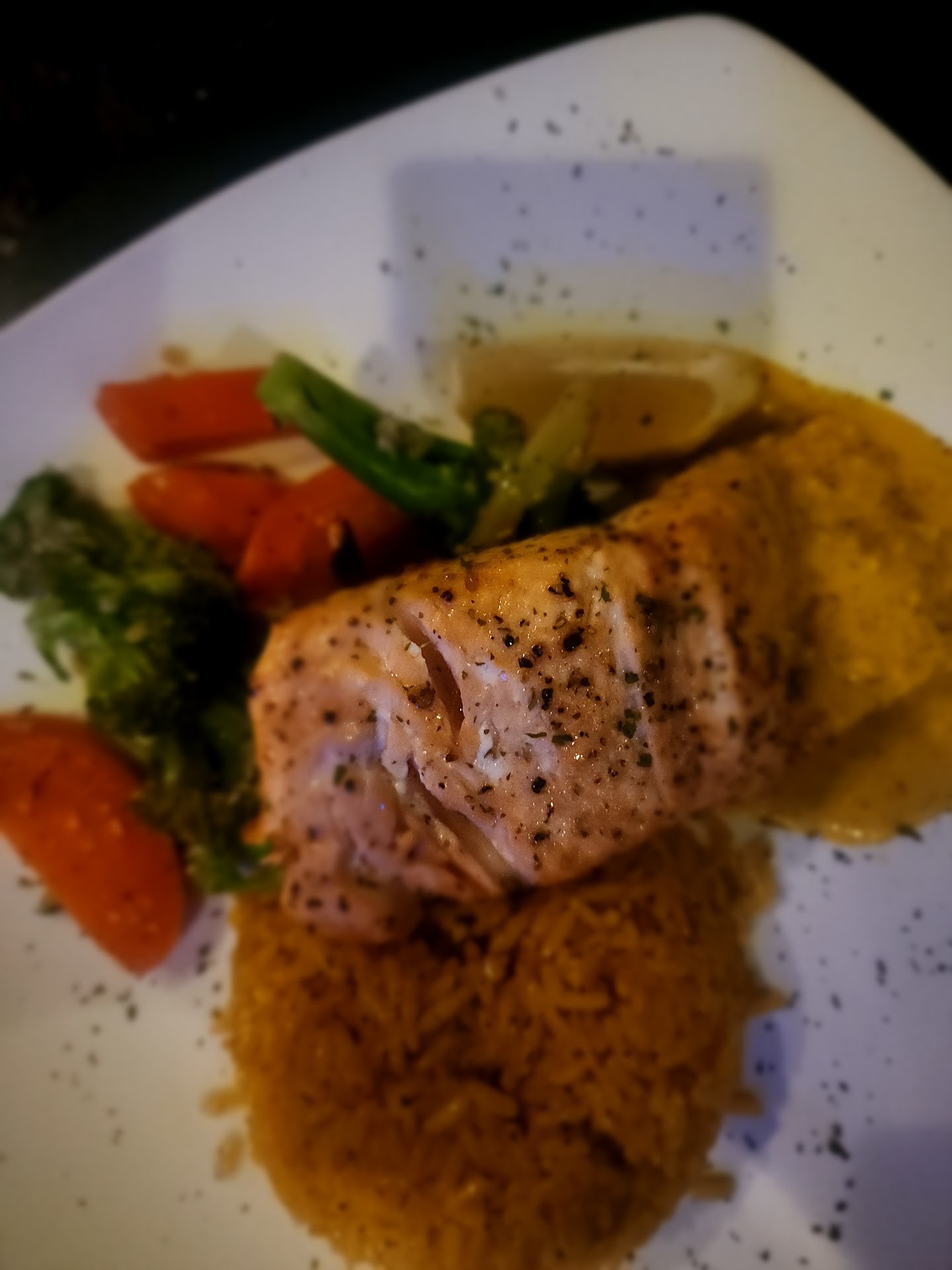 We had a great dinner at Surf Nâ Turf Bistro in Charlotte Amalie! The food was really, really good â our group of four had the grilled salmon with rice and veggies, seafood paella, cheeseburger and fries, pot stickers, and coconut shrimp. Everything was delicious! Though we personally didnât love the coconut shrimp as much because the breading wasnât very seasoned, they provided a sauce with it, and others might enjoy the lighter flavor.