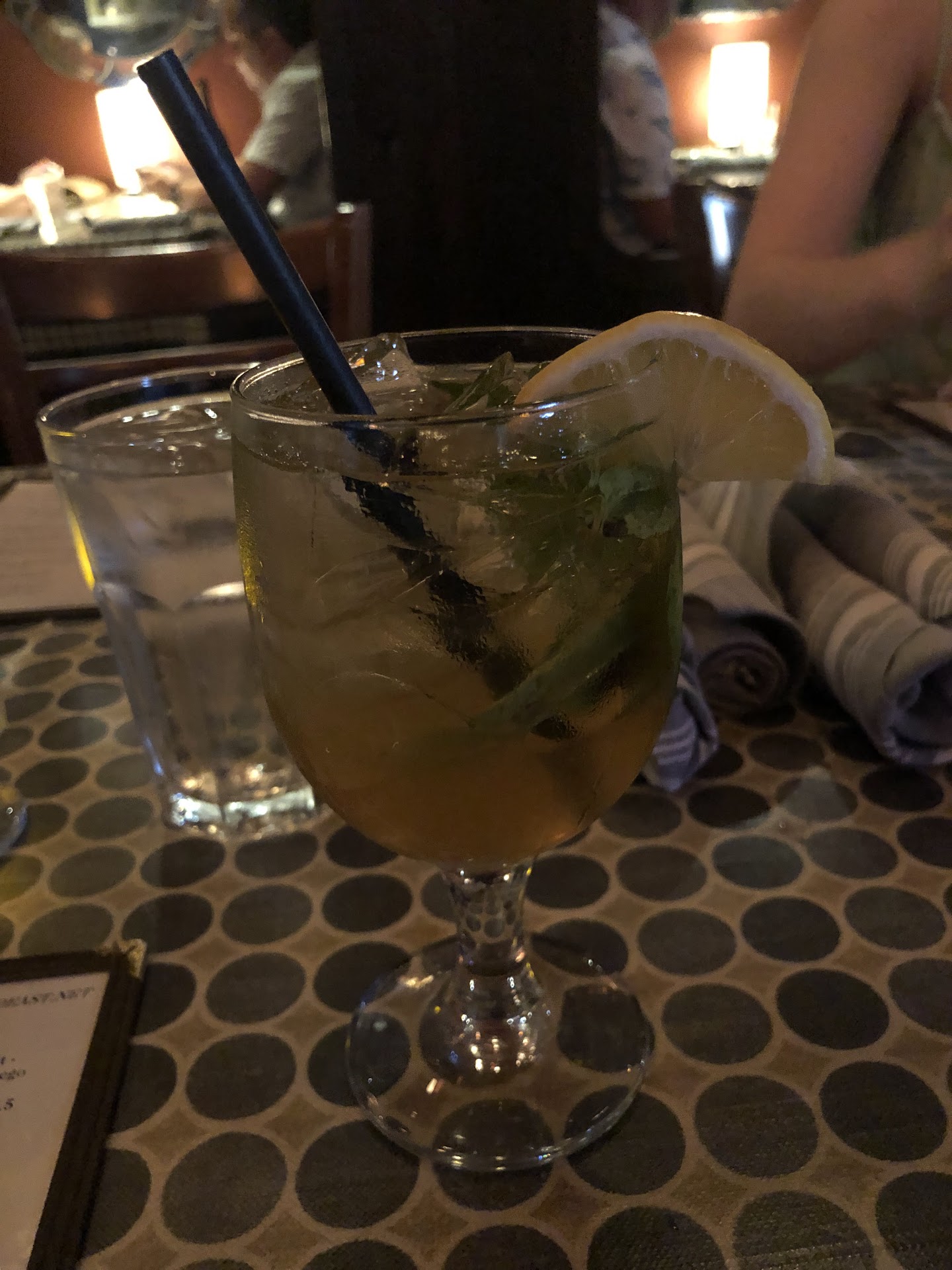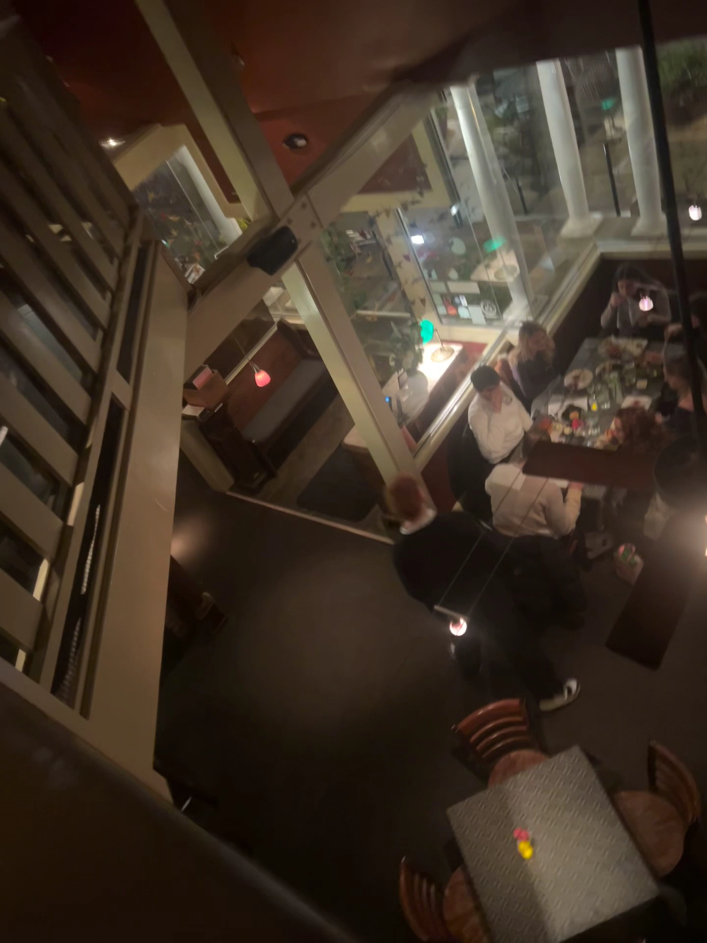 Interior wise it’s very eclectic with a variety of shaped tables sprinkled throughout with vinyl table coverings upstairs (next time we’ll try to sit on the main floor where they have booths.