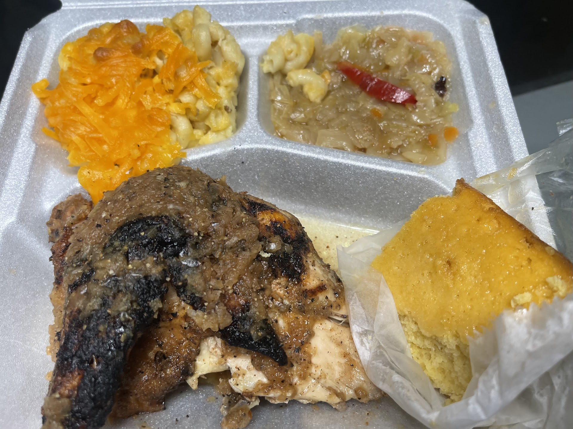 Ordered oxtail. Received 1/2 chicken. Didn't know until I got home (they cover their boxes in OBSCENE amounts of aluminum foil). Had the server give me an attitude because I wanted a new plate or a refund -- oxtail is expensive.