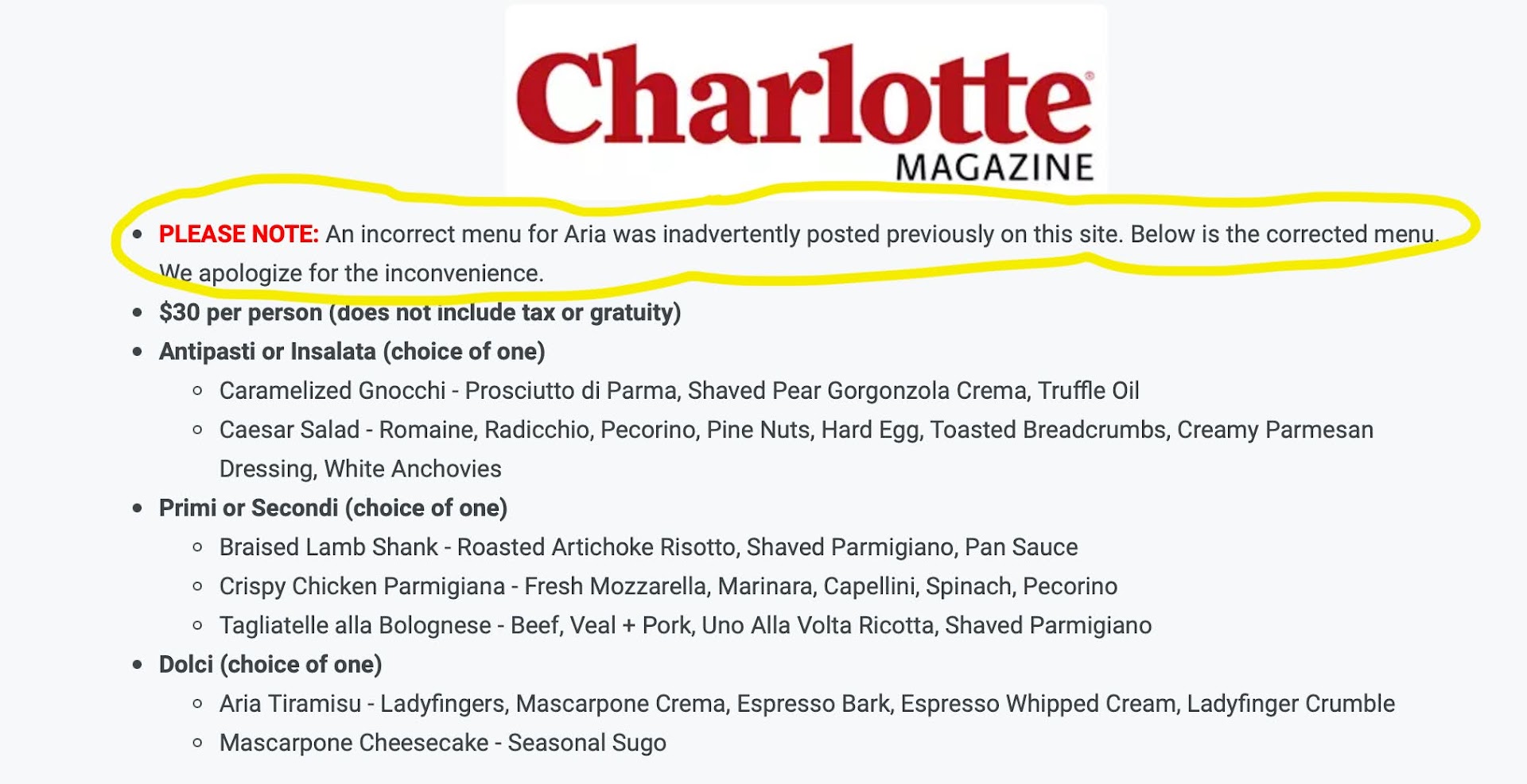 Overriding issue: Manager never came to our table when requested. This is very telling as I only wanted to share some continuous improvement suggestions to improve Aria’s customer experience…