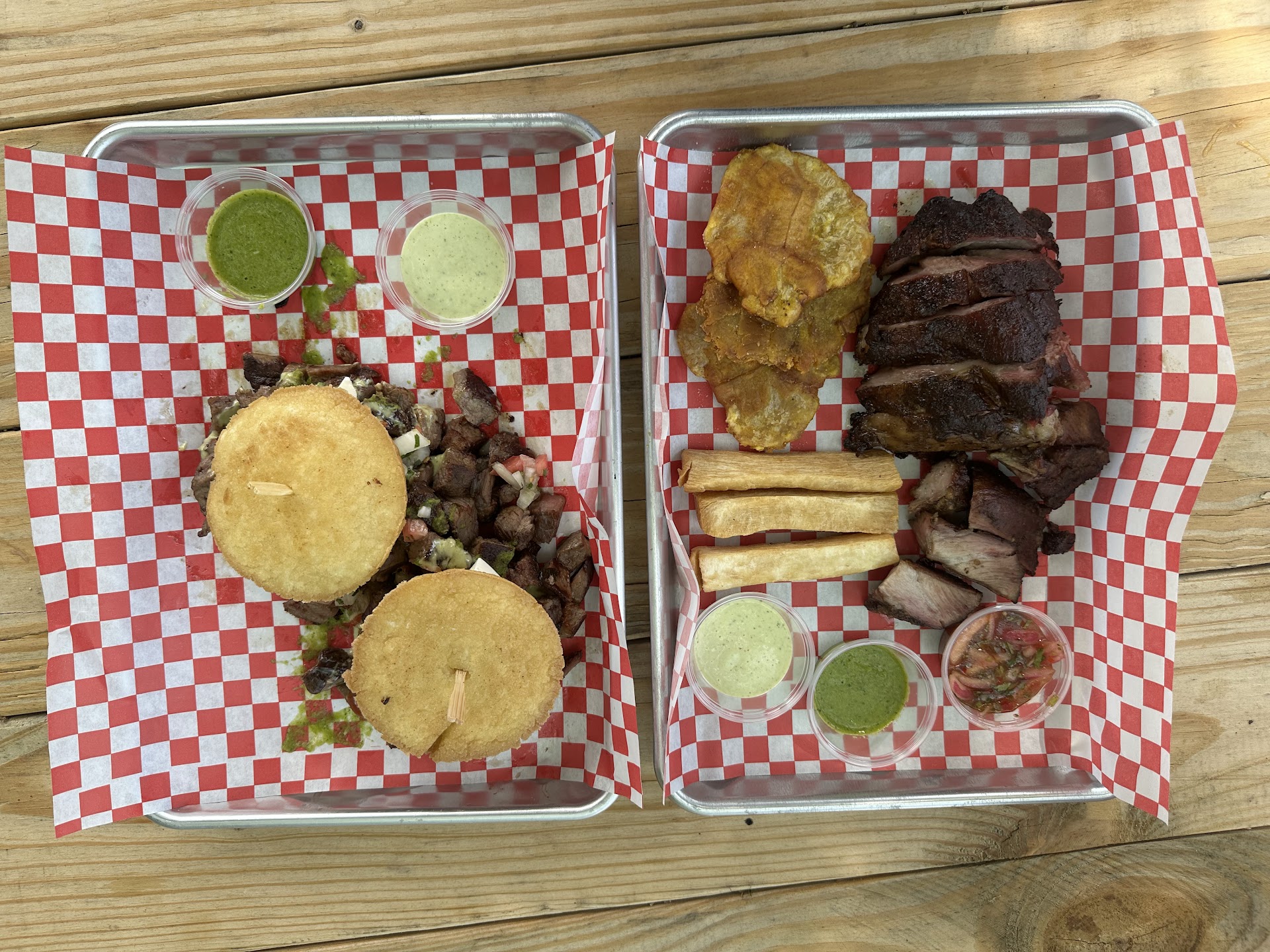 If you like slow roasted and grilled meat this is the spot for you. I had beef arepas and my husband had a pork platter with sides. The food was INCREDIBLE. Portions were large so we easily could have shared one item with some sides.