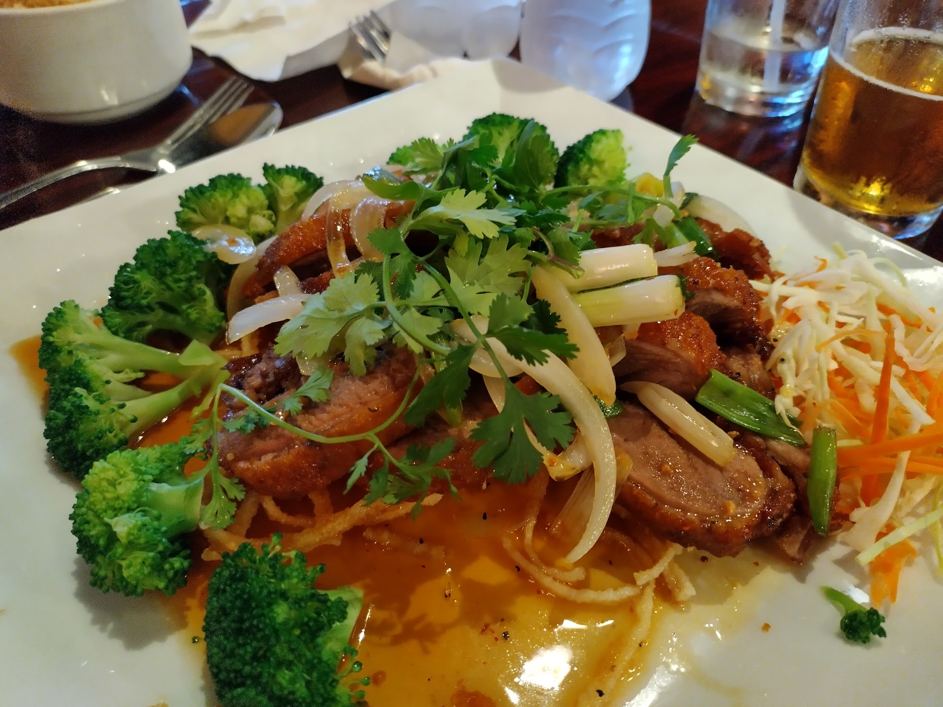 We ate the dinner and the pad thai was so dry and was nothing but noodles and tofu, no oeanuts, or scallions, or anything else that was supposed to be on it. The fried rice was decent and just like any fried rice you can get somewhere else.
