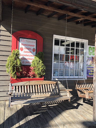 Donāt sleep on the little vegan carry out thatās in there - they make the BEST veggie burger Iāve ever had! Iām not veg or vegan, but I can appreciate a delicious veggie burger and the Southwest Veggie is just that - amazing. They also have really delicious smoothies, too! Every time I go to this shop, I have to get carry out from the cafe. There arenāt any tables or anything but there are two swinging chairs outside that we usually sit at to eat.