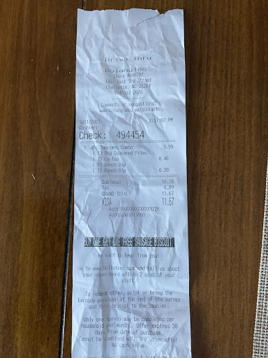 Read moreThis Bojangles was the worst fast food experience I've ever had. There was a single drive thru customer at the time I walked inside. Two customers inside. I stood at the register for ten minutes before I was ever even acknowledged. Then once the employee tried to take our orders he couldn't understand why the printer was "out of ink".. the printer he was talking about was a thermal printer for God's sake. I don't even work there and I knew more about it than they did. After 5 more minutes of printer issues it turned out the paper was in backwards. After I ordered and my two friends ordered, it took about 15 minutes before we all got our food, in which time a lady came inside who had apparently been waiting for an item they had to special make for her and had been sitting in her car for 25 minutes. They had forgot about her completely. mind you.. there was no other customers at this point. And everything I ordered was in the hot bar area and in stock. All they had to do was scoop it. I received the most undercooked biscuit I've ever seen, another person I was with received a chicken patty that looked like it had been sitting out for a day. I demanded they replace it with something else which they did (only positive point during the entire visit) meanwhile the entire time I was in there, multiple employees were walking around bitching and complaining about being there. Not a single employee had a smile on their face at any point. I mean I get it.. who wants to work at a Bojangles, but hell I don't particularly like my job either, but I sure as hell make sure the customers I interact with don't know that. I will never go back to this location and honestly it was so bad that it's making me reconsider going to any...