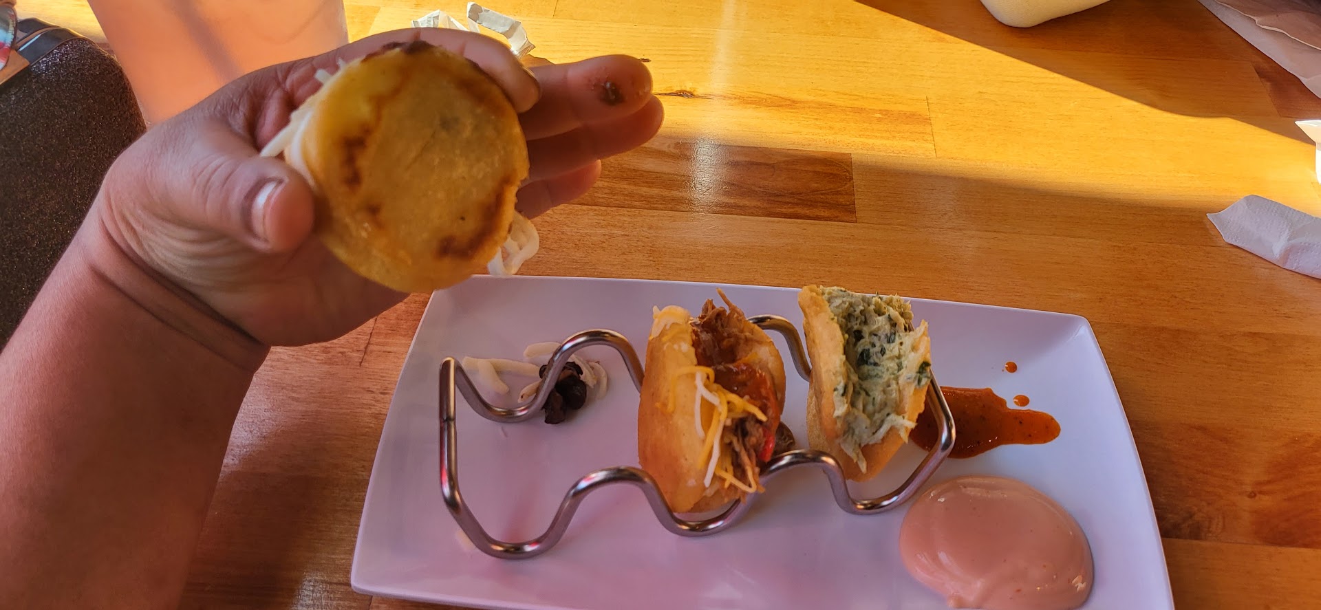 Read moreMy hubby and I went there for the very 1st time this afternoon to try their food: a Venezuelan and Colombia Restaurant. I've tried Colombian food many times before but I never tried Venezuelan food before and I really wanted to try an Arepa. I ordered two Colombian meat empanadas and a Carne Mechada Arepa. My hubby ordered 2 Colombian meat empanadas, a Venezuelan empanada and a sampler of 3 mini Arepas of various flavors. We were served the Colombian & Venezuelan Empanadas first and got the Arepas afterwards. I was disappointed of how greasy all the empanadas were and quite bland. However the empanada sauces were delicious. We really enjoyed the Arepas the most. My only complaint was that the Carne Mechada was a bit dry and chewy. This restaurant should definitely just serve Arepas but at least fry the empanadas at a higher oil temperature to avoid them from getting too greasy. If I ever decide to return, it will only be for the Arepas. I'll get my Colombian food...