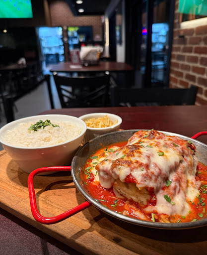 Fui conhecer o restaurante por indicação de um amigo que sempre falava muito bem do lugar, e posso dizer que a recomendação valeu a pena. Era minha primeira visita, e fomos em um grupo de oito pessoas — o que normalmente pode tornar o atendimento mais lento, mas a moça foi super atenciosa. A equipe foi paciente com todos da mesa (especialmente com a minha filha que tem autismo) e sempre limpando a mesa assim que possível. Começamos a noite pedindo pastéis de queijo e de frango com catupiry. Ambos estavam bem gostosos, com massa crocante, só achamos que poderiam vir com um pouquinho mais de recheio — nada que comprometesse, mas fica a dica porque estavam realmente saborosos! Na sequência, provamos várias opções do cardápio, por indicação. A jantinha de frango com bacon foi uma das favoritas da mesa: bem temperada, o frango gostoso e o bacon crocante, vinagrete saboroso, tudo muito bom. O parmegiana também surpreendeu — carne crocante,molho de tomate bem equilibrado e queijo derretido na medida certa. Os chicken tenders também estavam super crocantes. Pedimos também algumas bebidas, porém algumas estavam em falta como fanta laranja. Pra fechar, pedimos uma pizza para compartilhar e ela com certeza foi o nosso favorito — massa boa , crocante e com bastante sabor, SUPER RECHEADA. É o tipo de pizza que lembra o Brasil e a nossa abrasileirada em comidas que vem de fora. Outro ponto positivo foi o ambiente: acolhedor, animado e com música ao vivo, o que deixou a noite ainda mais especial. No geral, foi uma excelente experiência, já virou um lugar que quero voltar...