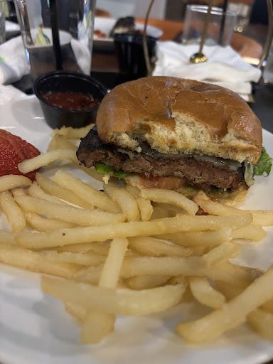 Around 10:40 (almost an hour later) our food comes. DO NOT ORDER THE SUYA PLATTER WITH THE EXPECTATION OF AN ACTUAL PLATTER. The platter was a 5-6, 1-2 inch length slabs of delicious tasting thin steaks, overcooked tasty shrimp kabob, and a few grilled peppers. By the way, the grilled peppers were the “mixed vegetables”. My daughter chose the jollof rice as her side. It was cold and uncooked. We sent it back and didn’t bother wanting another one ( since it would have taken Lord knows how long). I enjoyed my burger with the plaintains. My husband enjoyed his tacos (2 come in an order). The food tasted good. I don’t fault the chef. He was doing the best he could, but he clearly needs help.