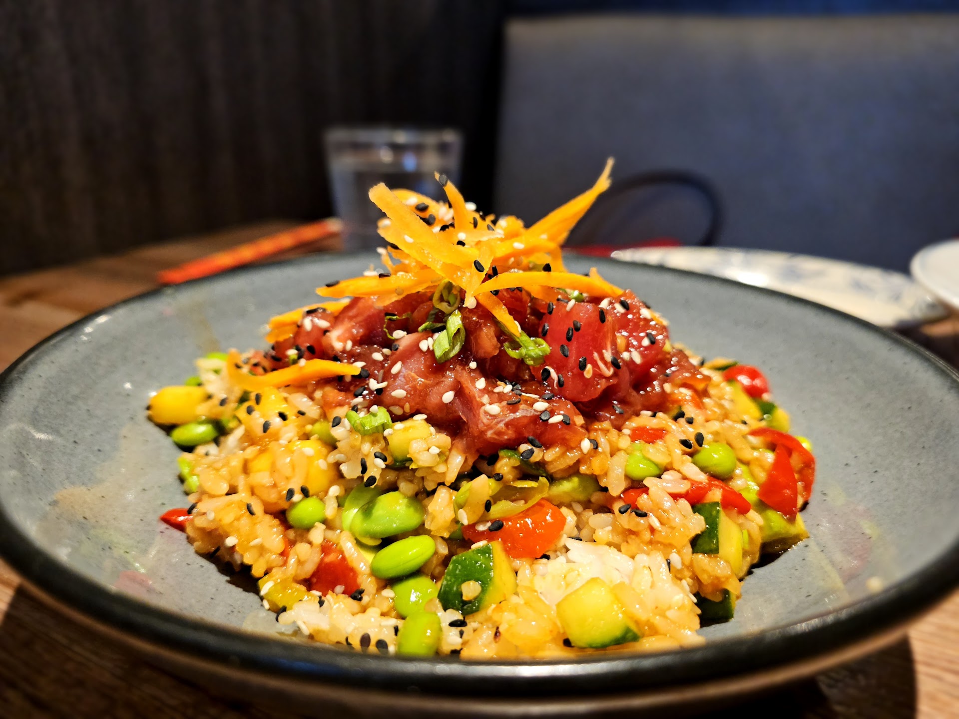 The shrimp and lobster roll was great. The pasta was tasty but felt they could have given more pasta. The poke bowl though, was drenched in sauce. Not to be mean, but guess that's what we get for ordering a non-American dish in an American restaurant.