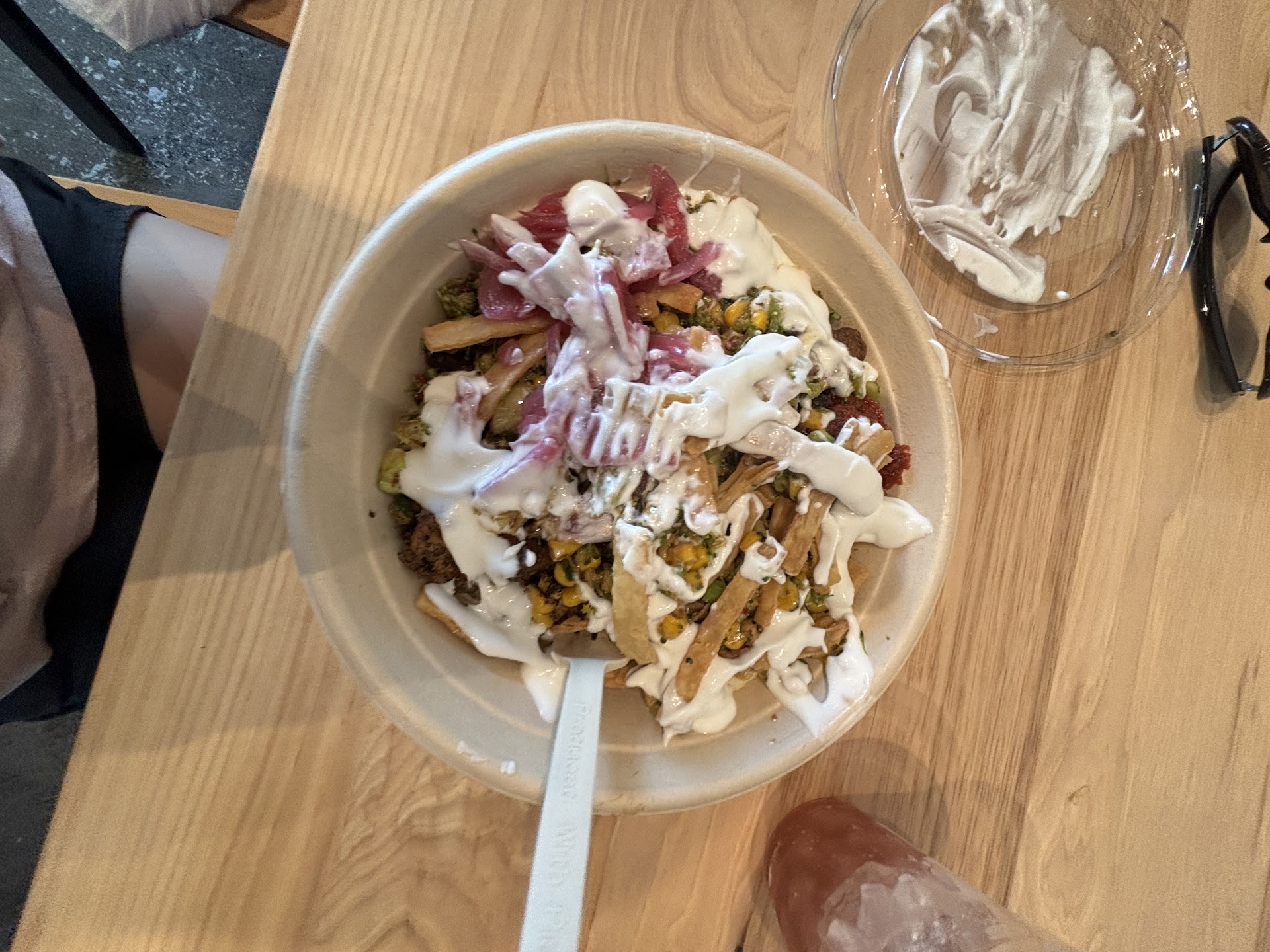 Ā Ā Ā Read moreI visited this location last week, and I can positively say, this is definitely my favorite location Iāve been to! I originally stopped in to use their restroom, after a long shopping day in the Blakeney shopping center, and WOW! These are some of the cleanest public bathrooms Iāve been in, in a while. I must say though.. I was pleasantly surprised by the cleanliness of the entire place. My first impression of Cava was at the Waverly location, which I visited a few months back, and the entire place was dirty!! Including the employees prep counters, tables & chairs(outdoor seating as well), drink & utensil station was extremely sticky, garbage cans overflowing, etc. Needless to say, the Blakeney location almost had my eyes beaming out of my head, by just how clean everything was! The tables & chairs here were very clean, as well as the floors, the drink & utensil station was spotless, & their garbage mustāve been recently taken out, as it was virtually empty. I was also greeted as I walked into this location, which didnāt happen at Waverly. After my long shopping day, & trip to the washroom I decided to hop in line as there was only 2 people ordering at the time. I ended up creating my own bowl, and two girls both named Lauren helped me out. They both had smiles on their faces throughout the entire ordering process, and their teamwork was fantastic! The Lauren in the gray shirt ended up fixing my toppings and checking me out, she even changed her gloves between finishing my bowl and touching the register.. HUGE, in my book! Both girls customer service, and cleanliness of the store have me hooked! I definitely consider this location the best, for its staff, cleanliness, and itās food! The food was bomb! The greens & grains were fresh and not dry, the harissa honey chicken was super tender, & hot, the toppings were fresh and vibrant colored! Everything about this location is what all other locations need to take notes from! Iāll definitely be a regular here! Great job, Cava...
