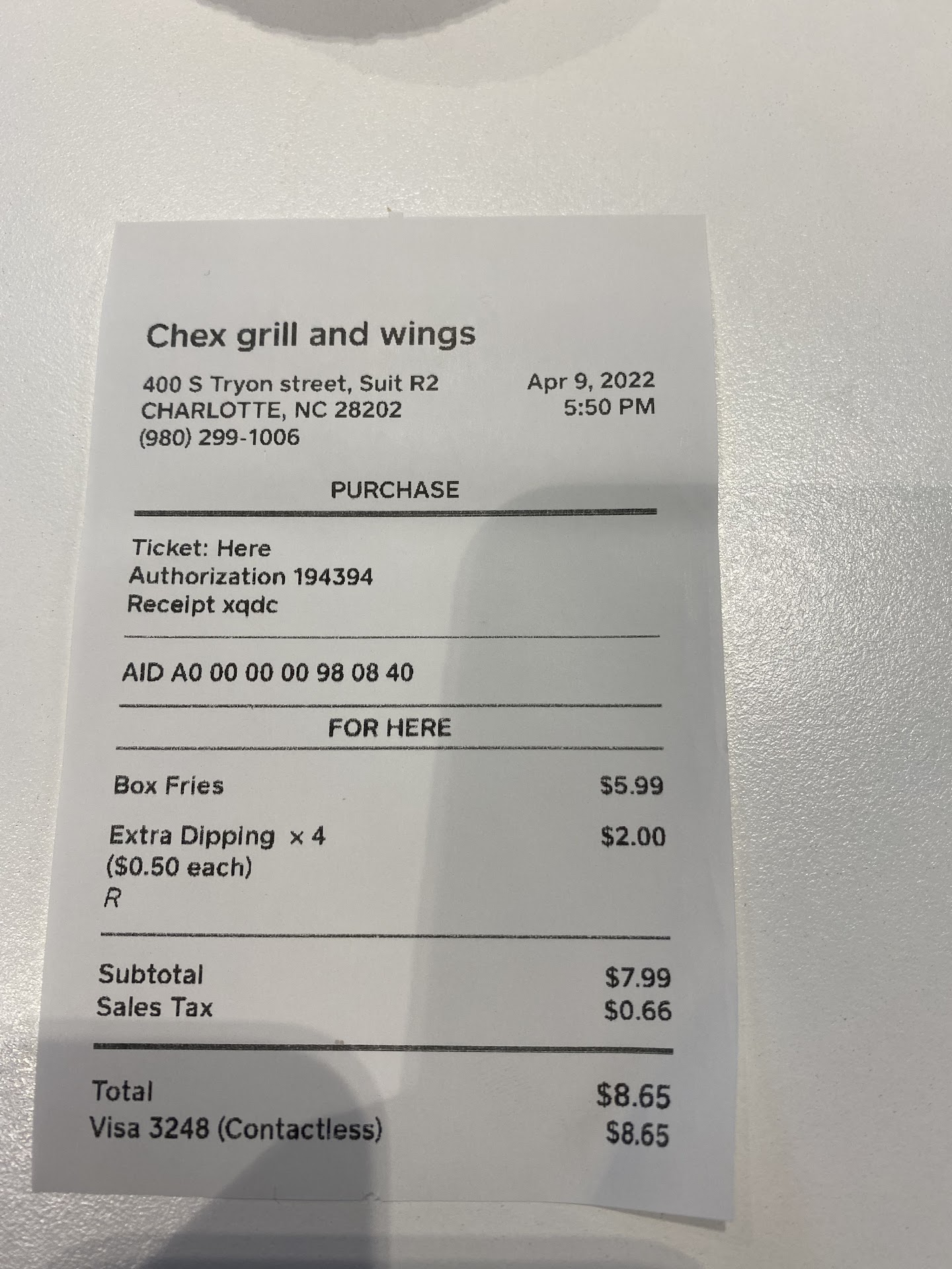 Ā Ā Ā Read moreOk this place was completely overrun with people and totally understaffed. There was a concert at the Bank of America stadium just a few blocks down the street and it did not appear that this facility did any preparations for the easily predictable influx of people who were going to be hungry before their event. The lady behind the counter was probably the rudest service worker that I have encountered in a long time. When we asked if we could substitute one simple thing on a sandwich for another simple item we were told āNOā with an eye roll to boot. Once we were able to complete our order which was not complicated it took over 30 for the food to come out. Like I said, this place was packed but it was predictable that it was going to be packed and preparations should have been made. The other thing was the staff was still taking orders but nothing was coming out of the kitchen which was clearly compounding the issue. Once we got our food we found that the turkey sandwich was prepared wrong, and the burger I had made me ill. The only good thing we ate were the French Fries. This place is a hard pass on busy nights. Take your chances on a...