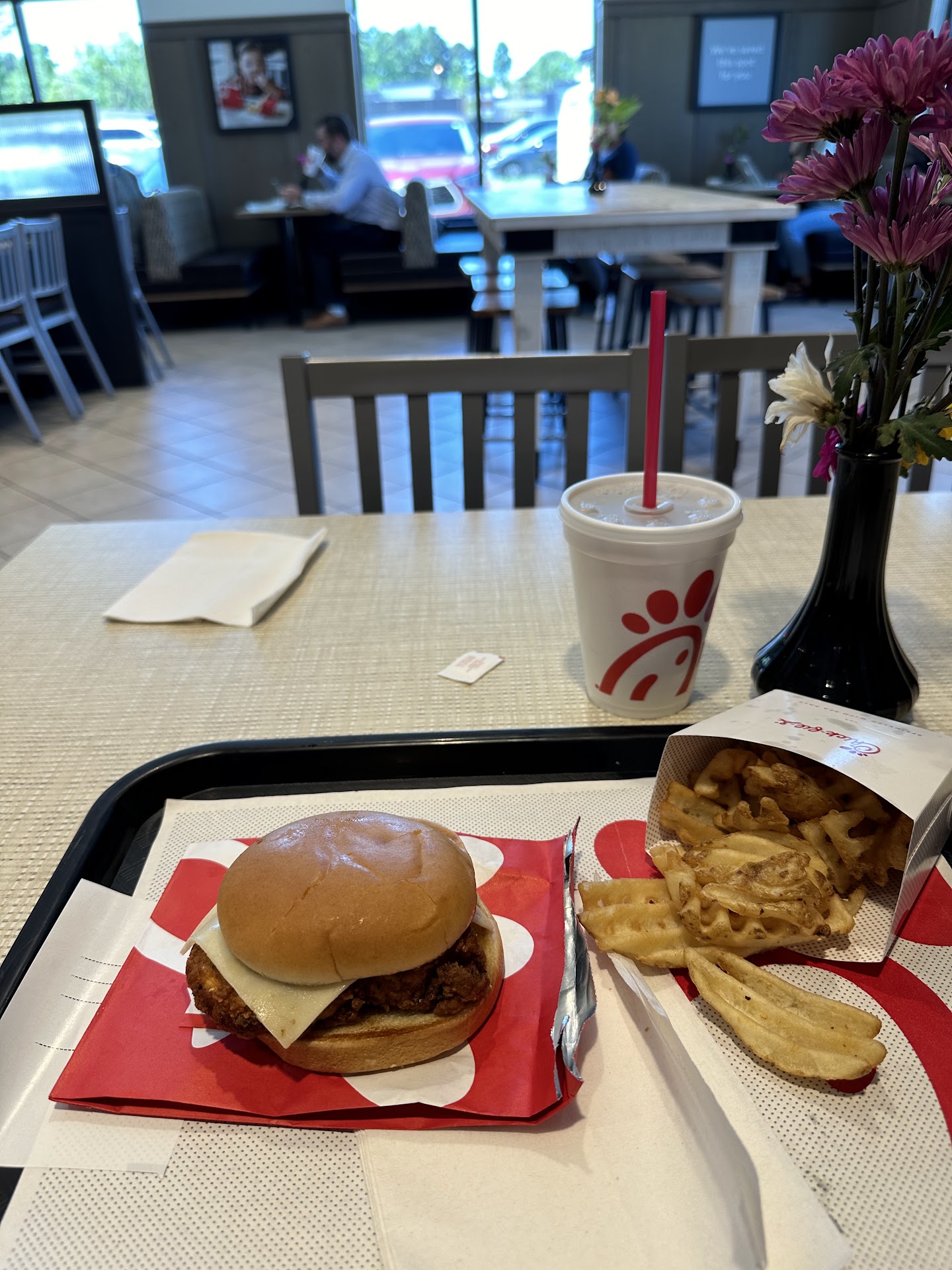 So I'm not sure if this was a one-off thing but the employees were all moving slow and this is not typical for your average Chick-fil-A so I was quite a bit let down.