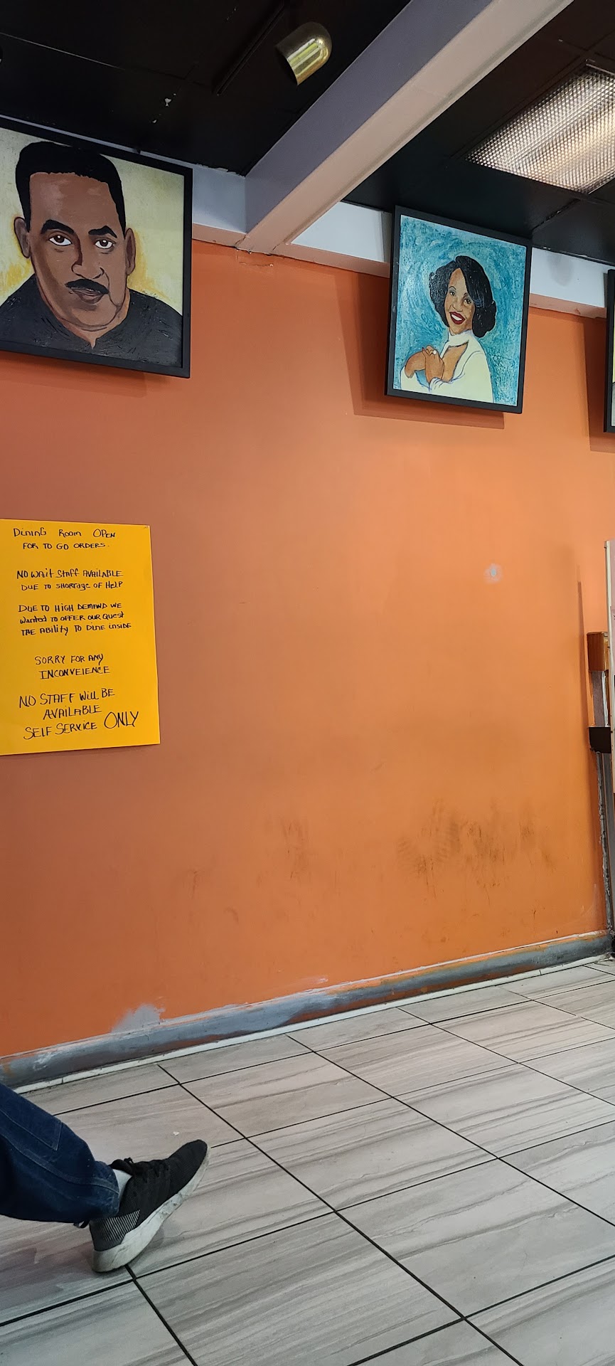 I walk in, all 6'2", huge beard, scars, and tattoos, strait up good ol' boy whiteness. I swear the entire place stopped to stare at me when I walk in. The cashier was very polite, informed me my chicken wasn't ready yet, so i walk around a bit. There's all these nice hand paintings; MLK, Obama, you get the point, anyway the only thing i could think was, this is about to be the best damn chicken I'll ever eat. And boy was it ever.
