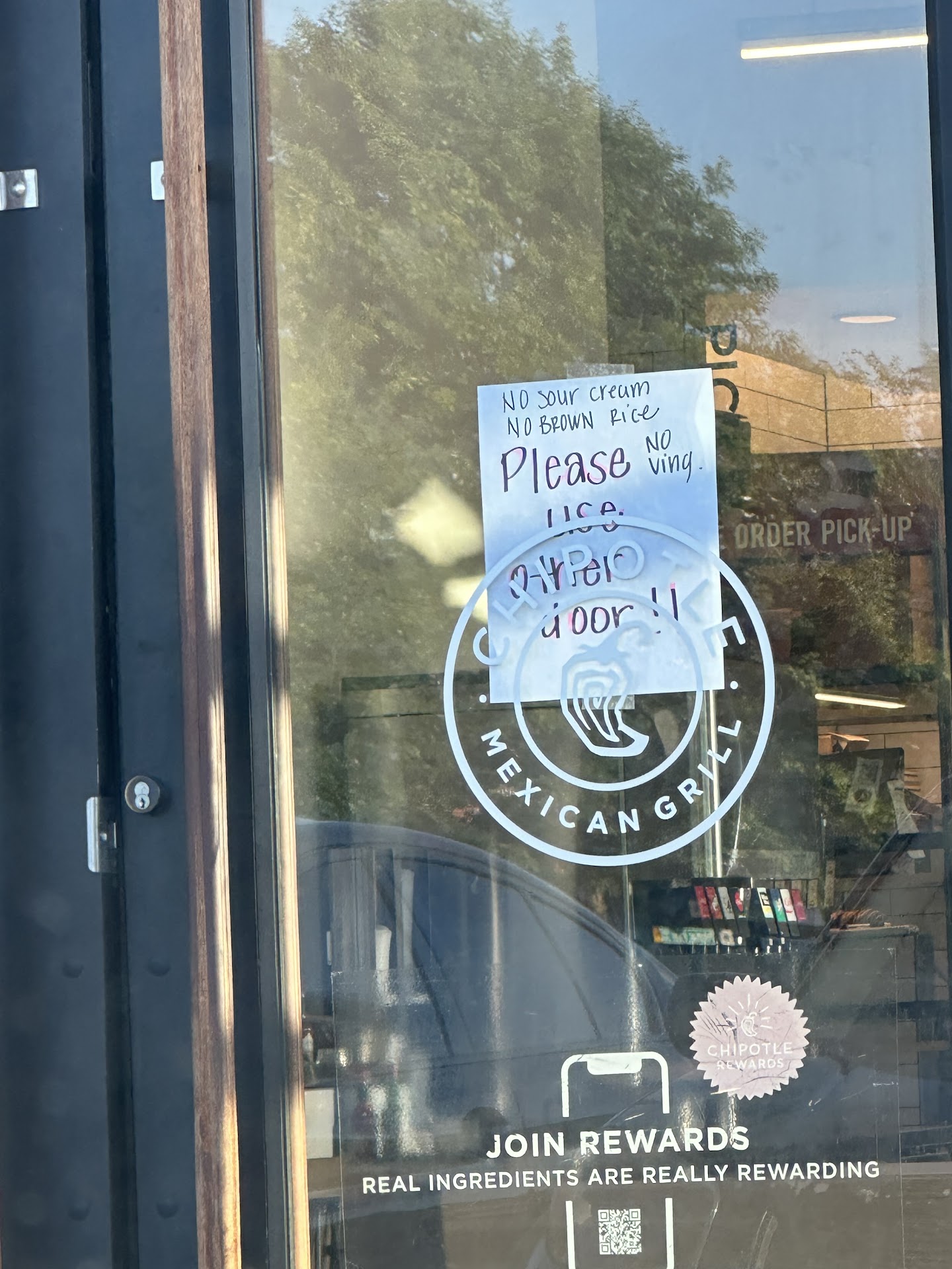 Read moreI have not been very satisfied with the service I received recently from chipotle. I have visited this one several times and never know if only online orders are accepted until I am actually there. Went there on a Friday evening at approximately 5:00 and there was a sign on the outside of it that said online orders only. I placed my online order from my car then went in to wait for it. Usually order the very same thing each time so I watched my food was prepared and notice that it was not being made properly. I asked for extra protein and $4.20 for two bowls no lettuce on one and extra cheese. When my order was finished I went to the Shelf to pick it up and inform the staff that I observed my order being made and it was not made properly. One of my orders was not made correctly with the extra protein I ordered. The counter clerk opened my order and proceeded to give me extra protein in two little cups and then I was told that they could not do anything else. My other order specifically said no lettuce and when I got home it was lettuce in that bowl. Both orders were missing ingredients no salsa and no grilled peppers and onions as well. I will never ever order again online from this Chipotle or any other chipotle. The whole concept of this establishment I l i k e d because you can actually see your food being made . when they don't pay attention to what you order online it's like oh...