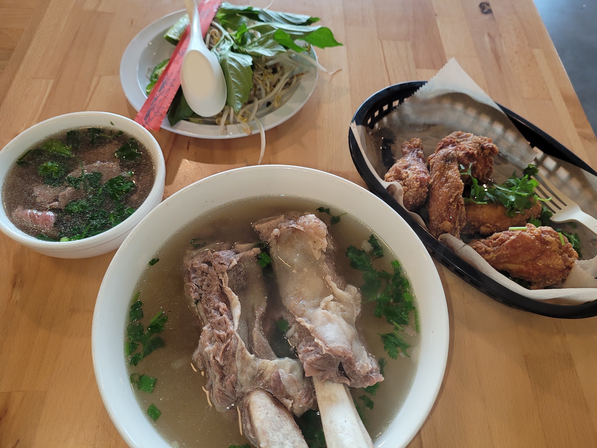 So, where do we start with cilantro. Outside it is a beautiful little place, it is in the Midwood area, and you find out that they serve pho. I decided to go in and have a bowl. You can only imagine how excited I was until I got to the counter. It turns out that they are not a true pho restaurant in my standard, but they also have Bhan Mi. Like I said when it comes to my standards this is not a true pho restaurant. They do not have certain nuances that real pho restaurants have (friendly and family-oriented owners and staff) as well as some menu items that should be there are completely missing. For those who are a little more adventurous with their pho, tendon, tripe, flank, fatty flank, and crispy flank is not at all available. However, you can get a rib in it. Yes, I said it. A rib. They make it as basic as they possibly can which to me just is not right. To be honest I feel like this is more of a Bahn Mi restaurant with pho sold on the side. Now let us get to my food. Since I did not have tendon, tripe, or fatty flank, I had to settle for pho meatballs an eye round steak. I also ordered fresh spring rolls. My food was brought out to me and those of you who have eaten this before, you know that you are supposed to be given Thai basil as a garnishment. Although I have had it this way, I was given mint. Now that did not bother me at all but what bothered me is the fact that when I did ask for Thai basil, I was told that they were out of it. Now this was early in the evening and on a Tuesday night so I am not sure how that could have possibly happened. So, I ate and finished my bowl. Then I turn my attention to my fresh spring rolls. when I open the box that they came in because I did ask for them to be placed in A to go box, I was disappointed at how messily they were made. All spring rolls have a uniform shape whether they be fried or fresh. These did not. It seemed like they just wrapped up whatever they could inside of the rice paper and gave it to me. What also bothered me is the fact that the young lady asked me what I wanted in my spring rolls when I ordered them. I told her I wanted shrimp pet she then proceeds to ask me is that all that I want in there. she was questioning whether I wanted the bean sprouts and the noodles and whatever else goes in there to be in there. At that point I was just completely thrown as to why that needed to be asked. After I pay for all my food and sat down and waited for it, I happened to look at my receipt, and I notice that I was overcharged which is the coup de gras of this whole review. The menu says spring rolls for $7.50 for two. I was charged $5 for each meaning I was charged $5 for each spring roll. I also purchased a drink which was supposed to be $2.39. My receipt said I was charged $3.99. so, I went back up to the register to let them know and nobody seemed to be able to fix it until a young man came up and printed out a new receipt for me. Now nowhere on this receipt did it say that there was a refund. I was extremely upset about it and I said why is this a new receipt that does not show that he says oh it will change, and you will see it in your bank account. I looked at my bank account today and nothing has changed. The same amount that I was charged originally has posted to my account. Also, this really is not that big of a deal, but I was told that they were not allowed to give out napkins which I find strange but was given a paper towel. Now I want to say this if you want real pho you can go down the street Pho Quynh, Pho Hoa Noodle Shop, or Pho An Hoa. This is where you can get the real deal and where you will not have to worry about being overcharged for something, being told that it is being corrected, and then finding out that it was not...