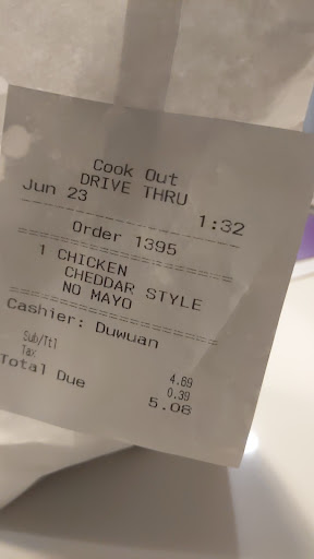 I'm sure the "Cook Out" would not have as many locations as they have if all of their locations operated this poorly. So my comments are not about the brand it was about this location, the preparation and the team...