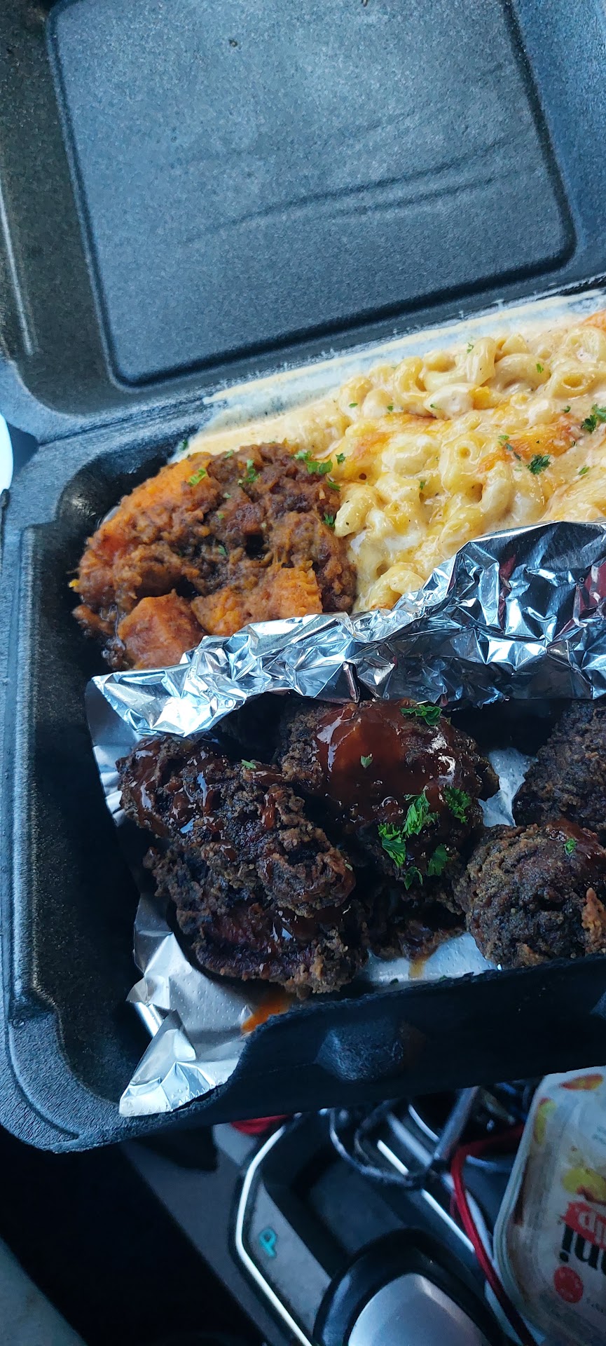 2nd .. the wait... OMG I don't know if this was me but I ended up waiting an hour from the time I ordered my food. The order initially said 30 minute wait .. but the Mac and cheese apparently ran out on my order. Causing me to wait an extra 30 or so minutes. I was given option to substitute but I ordered Mac and cheese I figured that's what I should gave gotten. So time is a factor in this review..