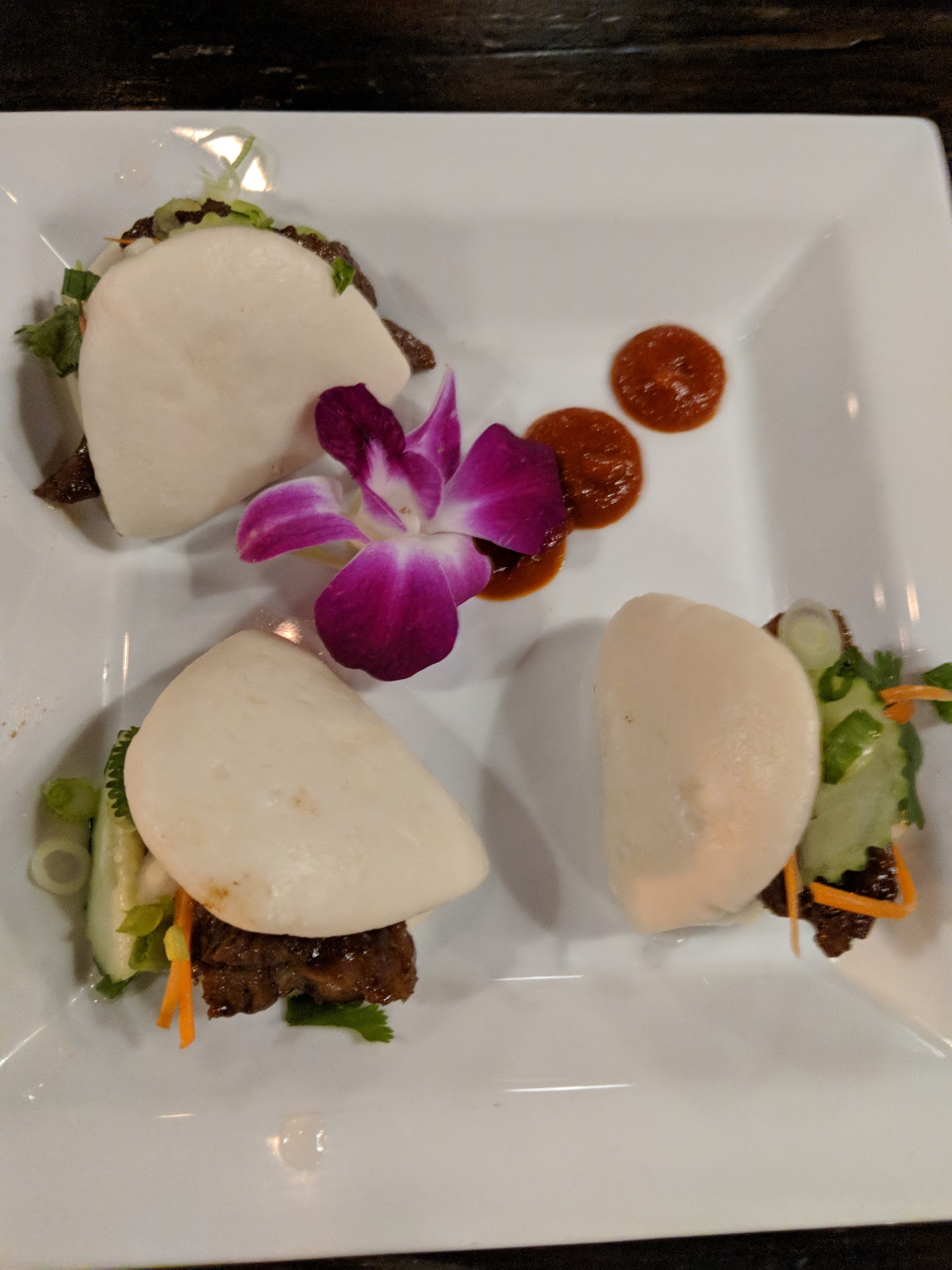 For appetizers, we started with the spring rolls and pork sliders. I loved the spring rolls and the sauce they came with. I was a bit disappointed by the sliders. The inside was great, but they came on bao buns which are supposed to be soft and ours were very hard.