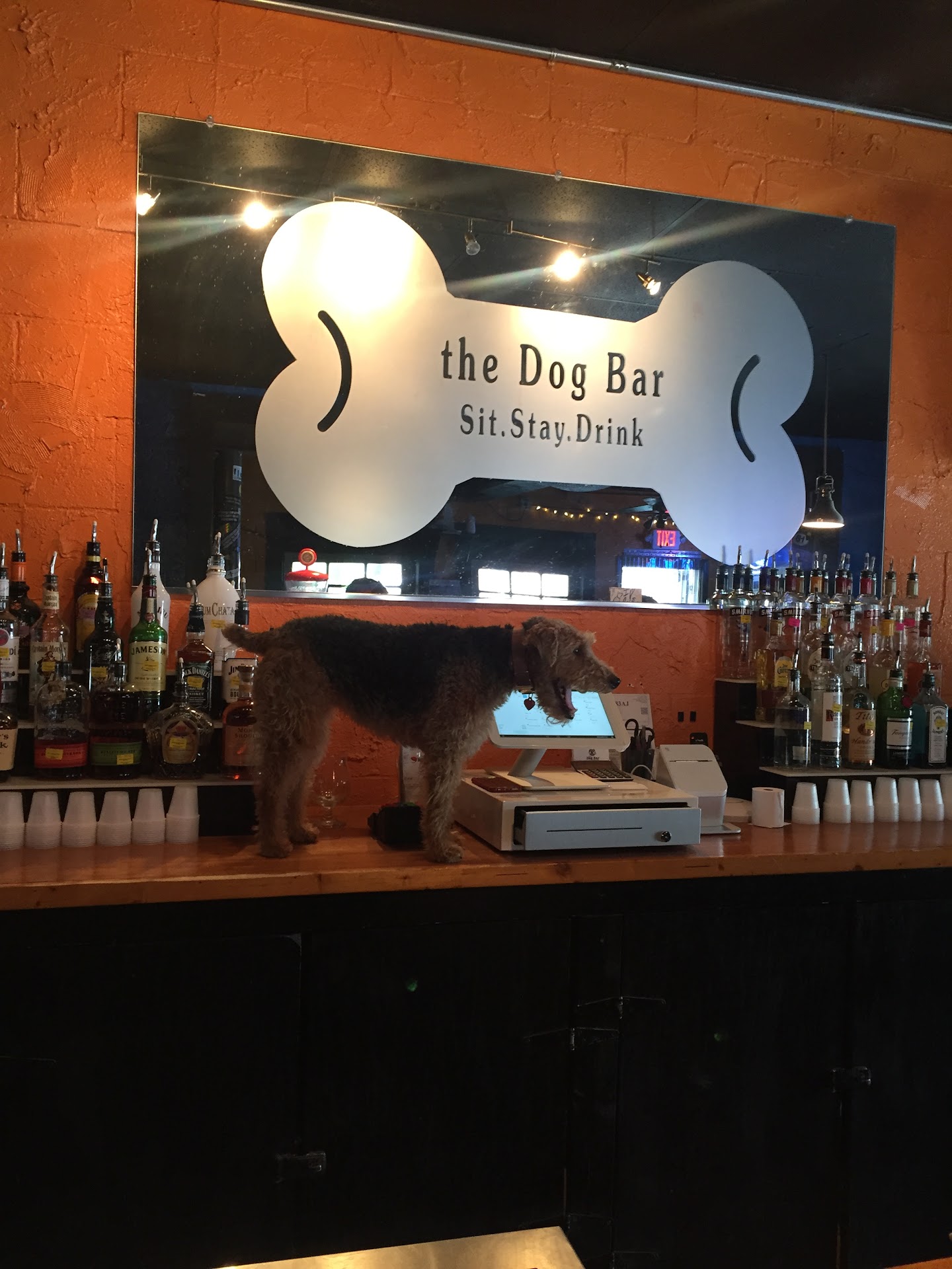 This is an open concept dog bar, meaning that dogs roam off leash. I've been here three times now with my pups Chuck and Charlie (my buddies in the picture, not taken at the bar). Large outside playground for the big dogs, and an interior bar that seems better for small dogs. Open seating concept that allows unleashed dogs to wander.