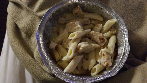 The salads are prepackaged so that was great; nice and fresh. The driver kept the hot and cold items separated nicely. He also brought a fork which is great since I'm in a hotel. I would've loved a couple of napkins as I don't have access to those while in a hotel, but maybe it's not Domino's policy to provide napkins? Maybe there's a place I can order them. IDK. I ended up using kleenex from the hotel.
