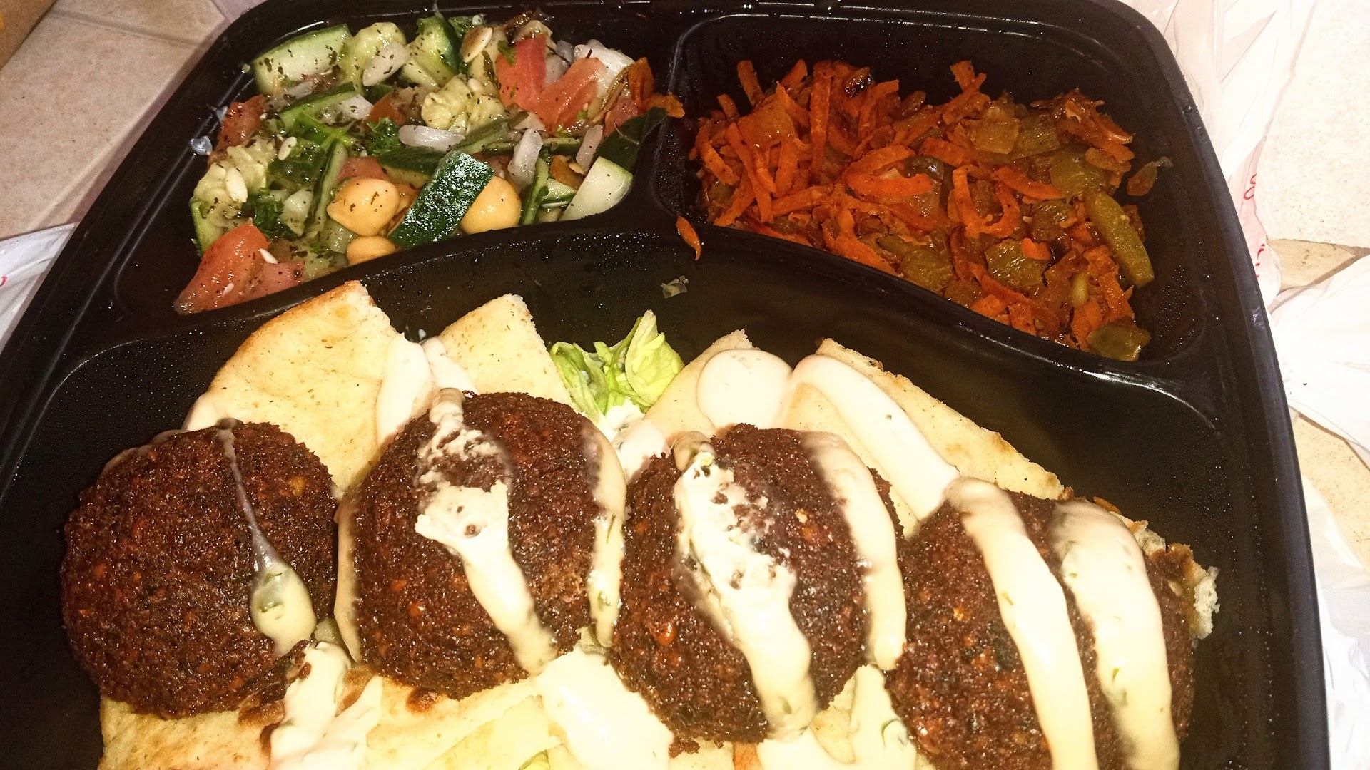 For my order, I chose lamb over rice, a dish I'm familiar with from Halal street carts in New York City. Unfortunately, despite the generous size of the takeout container, I found the meal portion to be somewhat lacking. The lamb over rice was tasty, but the rice itself was overly moist and oily. It's possible that this was due to the addition of the meat and sauces, but it was challenging to discern the exact cause. I had also requested hot sauce with my order, but what I received was more akin to Buffalo wing sauce rather than the deep, spicy flavors I'm accustomed to at other similar establishments. Surprisingly, the sauce did manage to enhance the overall flavor of the dish, but it was not what I had anticipated.