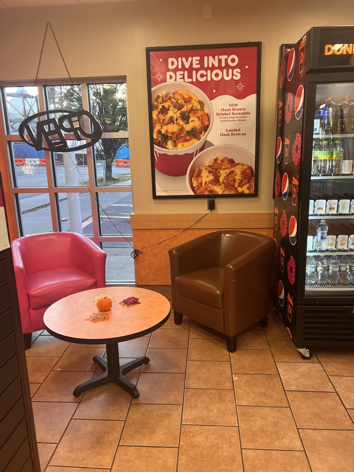 Don't come expecting a huge seating area to hang out in, but if you're looking for a quick coffee and donut run, this place does the job nicely. The staff's attitude really makes the difference – they make you feel welcome even if you're just popping in for a minute.