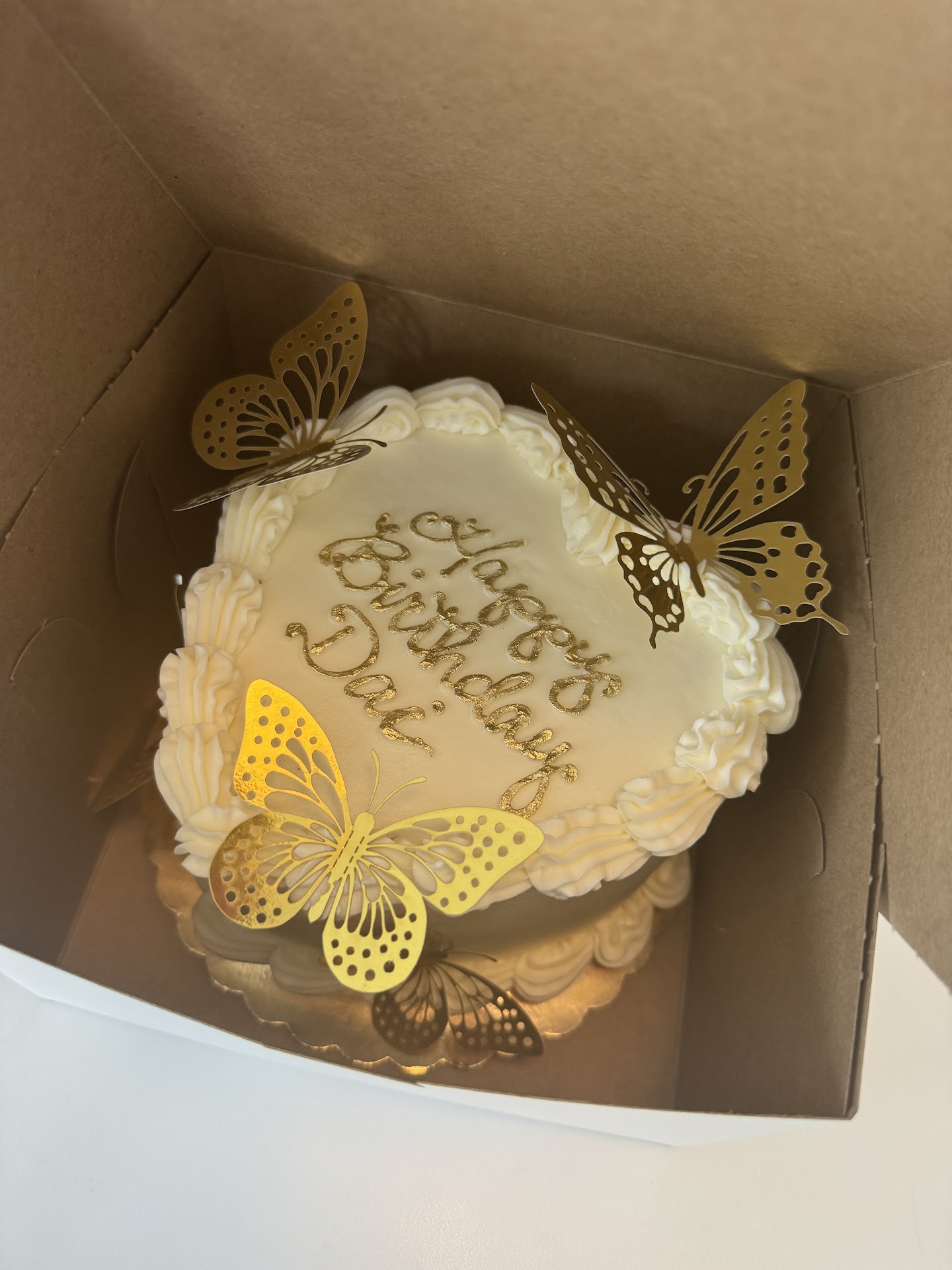 Someone called me ahead of time and said, âHey! The accents we received are rose gold instead of the agreed upon yellow gold. Do you want to use the rose gold, or would you like to change the design of your cake?â This would have been the absolute best option. While I came in fully prepared to pay for and get what I ordered, it would have been good customer service to offer some sort of reasonable compensation for your mistake (i.e. a percentage off, complimentary cake slices in the future, a coupon for future use, cookies or something showing an attempt to appease a long time customer) especially considering there was not enough time to fix the cake before my event.