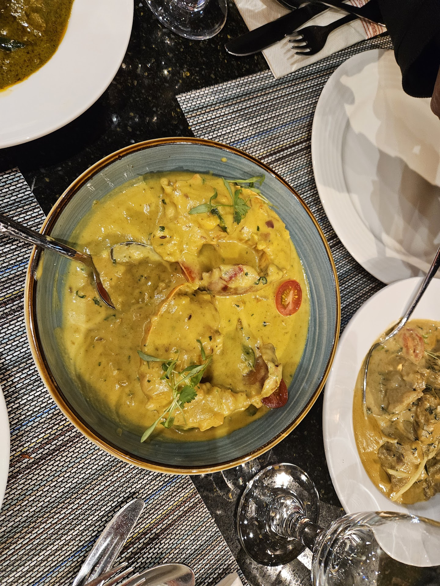 It was the first time we went to eat at this restaurant. The ambiance of the place was very nice. However, the people who served the food are not at all trained in the hospitality which is nothing surprising at any Indian restaurant. They don’t wish, they don’t introduce themselves. They don’t smile. They just come take the order and bring the food and just walk away. They don’t ever say enjoy the food or anything else I can do. They don’t know how to make customers’ experience special. We go to eat at a nice restaurant and are willing to pay high price but we don’t get a nice service at most Indian restaurants. People go out to eat at a nice restaurant for special occasions to have a good experience not just good food. Then we feel like going back to the same restaurant to celebrate again. This creates nice memory. I wish the hosts/hostesses are trained in basic hospitality. This will make a big difference especially with the American customers.