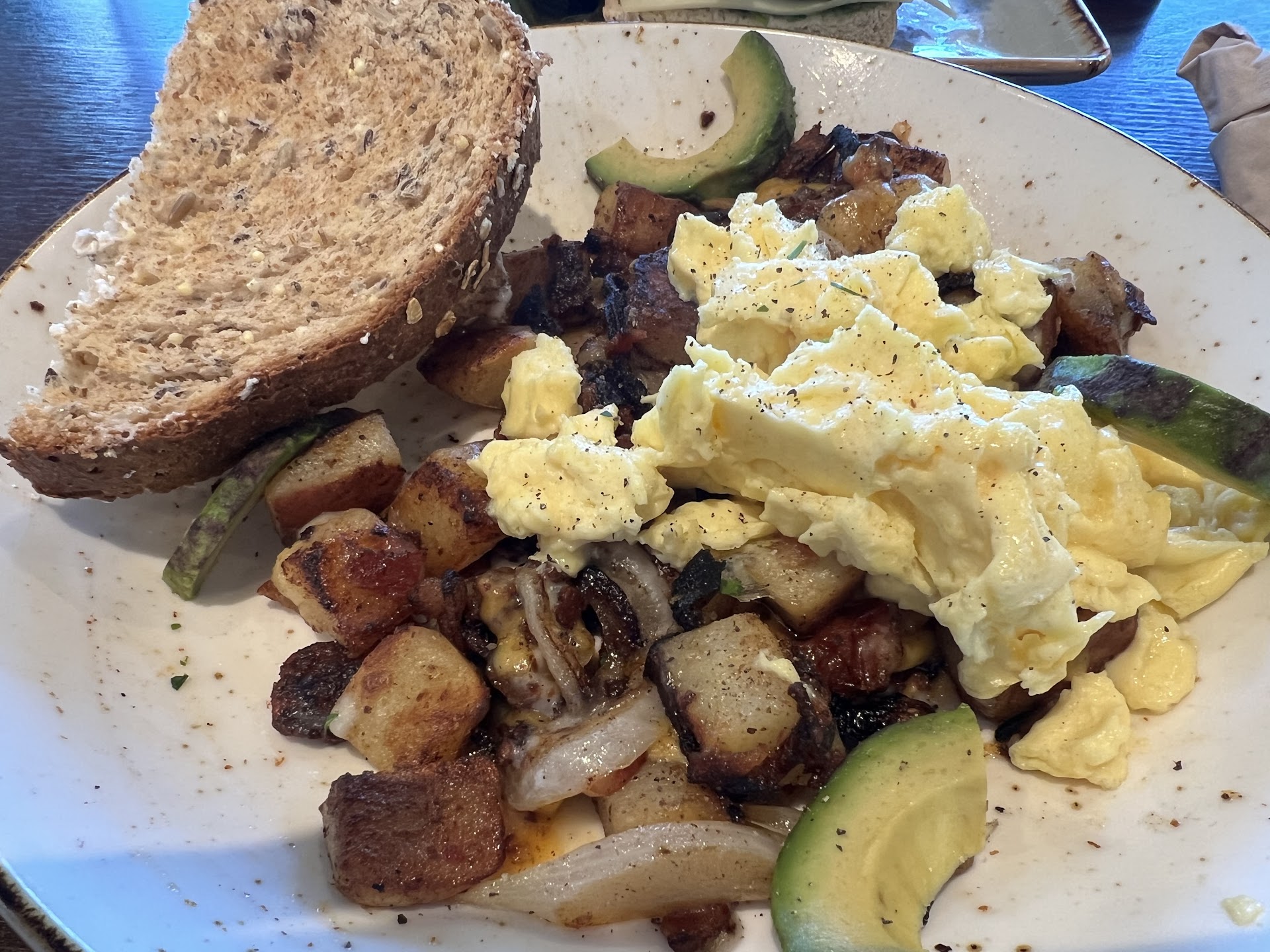 Read moreI love First Watch! Today, it was subar at best. No wait for table, which was nice. I came in seated by a nice new hostess who had been there 3 days. Waited 5 minutes with no service. I tracked the hostess down, she apologized and went and let them know. I got water from the waitress and tipped the cup above the carafe, waitress was suppose to bring another one. Must have forgot. I had to track the hostess, she apologized again and went and got me a cup. I ordered the Farmhouse Hash and a Monterey Turkey Sandwich for my birthday offer. Waitress delivered my food. Asked if there was anything else she could get. The farmhouse hash potatoes completely overcooked and burned under the eggs….tomatoes mashed to a point they were just there. Avocado under the toast bad. The bacon pieces were burned, some charred black. The toast and eggs were good. I just couldn’t get past the burnt potatoes and bacon. I ate what I could and just asked for to go cartons. Did get a bag at checkout. Normally, I go to Providence location. I wanted to try this location since I live in Ballantyne. I so hoped it would be better. Restaurant was...
