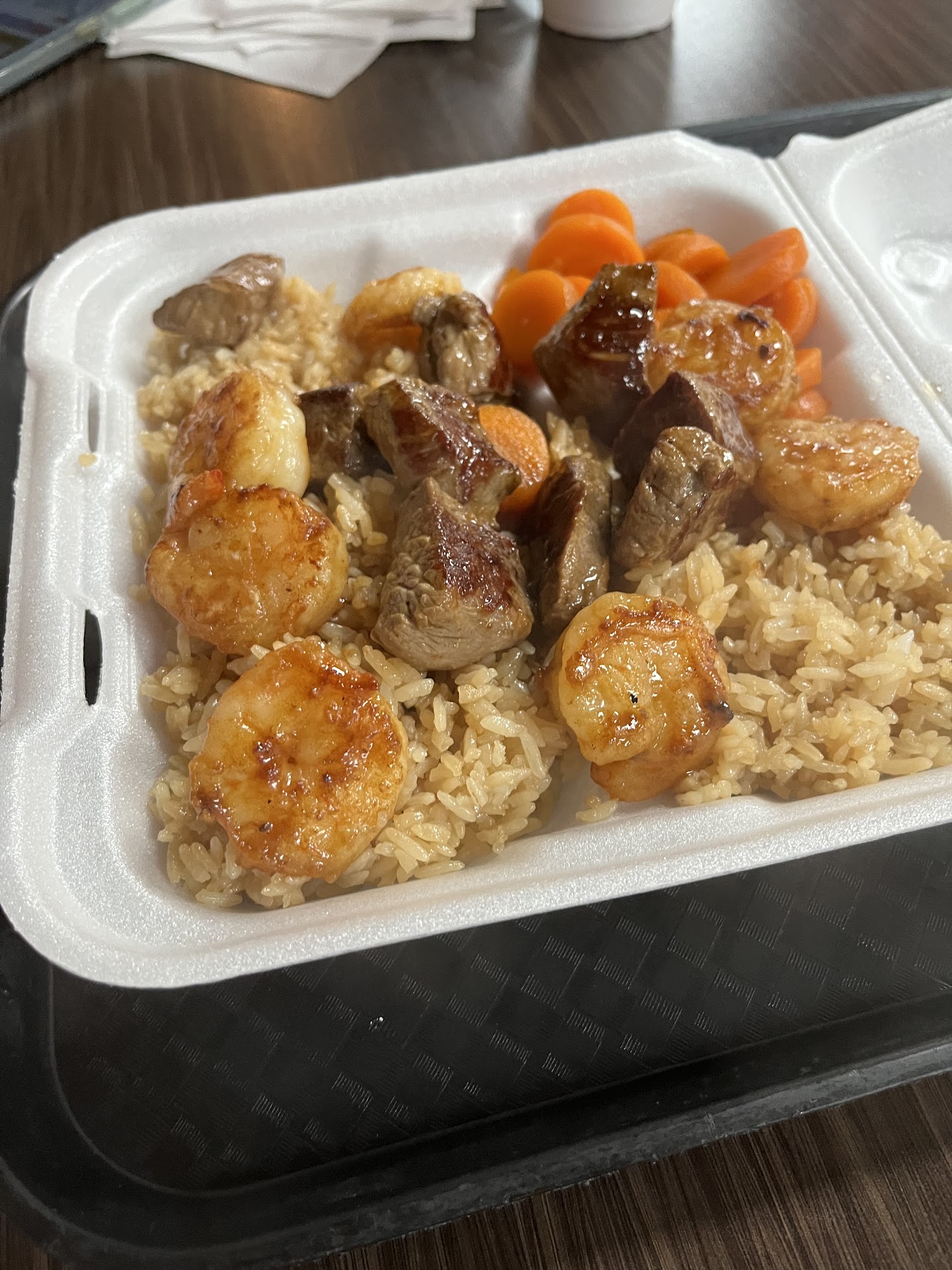 Ordered their hibachi steak, chicken, and shrimp and it was the most bland, tasteless food I’ve had in years. I don’t think they use ANY spices in their dishes. It was honestly like they threw the meat in a pan and cooked it with not even salt or pepper. Most of the vegetables consisted of a huge spoonful of cooked carrots. The zucchini and mushrooms that were in there were so overly cooked that they got mushy. Oh, and they left the tails on the shrimp and the “sauce” they gave me for dipping was simply catsup and mayonnaise. What a waste of money. I wish I had read the reviews here before I ate there, as I see everyone else complaining about the same thing. I’m shocked that in this day of social media, that they don’t read these reviews and do something about their bland, flavorless food. I will never eat here again. Most disappointing meal in years. Avoid,...