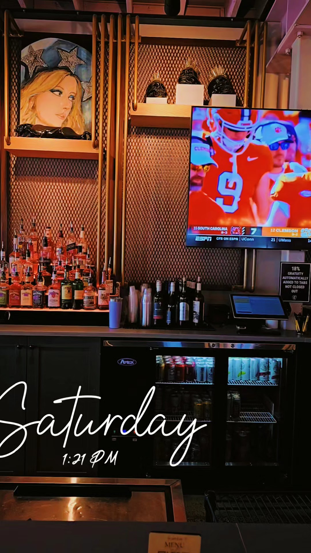 Experience/Atmosphere: I had a wonderful time for an after-work happy hour. Upbeat environment, TVs on different sports as background, open garage doors for easy outdoor seating access (made it hot though, I definitely want to wait until Fall to go back), and a décor combination of industrial, modern, and vintage. TIP: Carpool if you can!! It was very busy and while there is parking in the front and back and some street parking, it still fills up quickly. It took 30+ min for some of our group to find parking. Not the restaurant's fault, but plan accordingly. Being busy also meant it was loud. Which is not a problem for me, but be aware: if you like quiet, intimate places, this isn't the spot for you. Bathrooms were clean, well stocked, and ADORABLE!