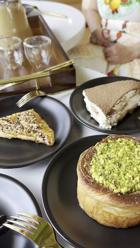 Our go to is still the Mafowar cardamom and cream— bold, fragrant, and creamy with just the right touch of sweetness. We also devoured a variety of pastries, especially anything with pistachios (seriously, get them all). The brioche and the especially the one with strawberries was sold out by the time we got there around 3 pm. Our savory favorite was the pastry with a nod to the everything bagel – filled with cream cheese and feta and cheese, reminiscent of a warm, flaky borek. Absolutely delicious!