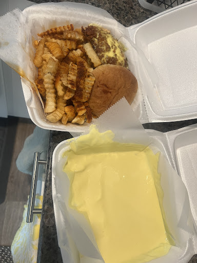 The food itself had potential, but the way it was assembled really took away from the meal. The fries were soggy and drowning in sauce, making everything messy and hard to enjoy. On top of that, they gave us an entire container of honey mustard — literally filled a whole to-go box with it — instead of a small cup. It wasn’t even bagged properly, so it felt careless and unorganized. Definitely not the quality or presentation I...