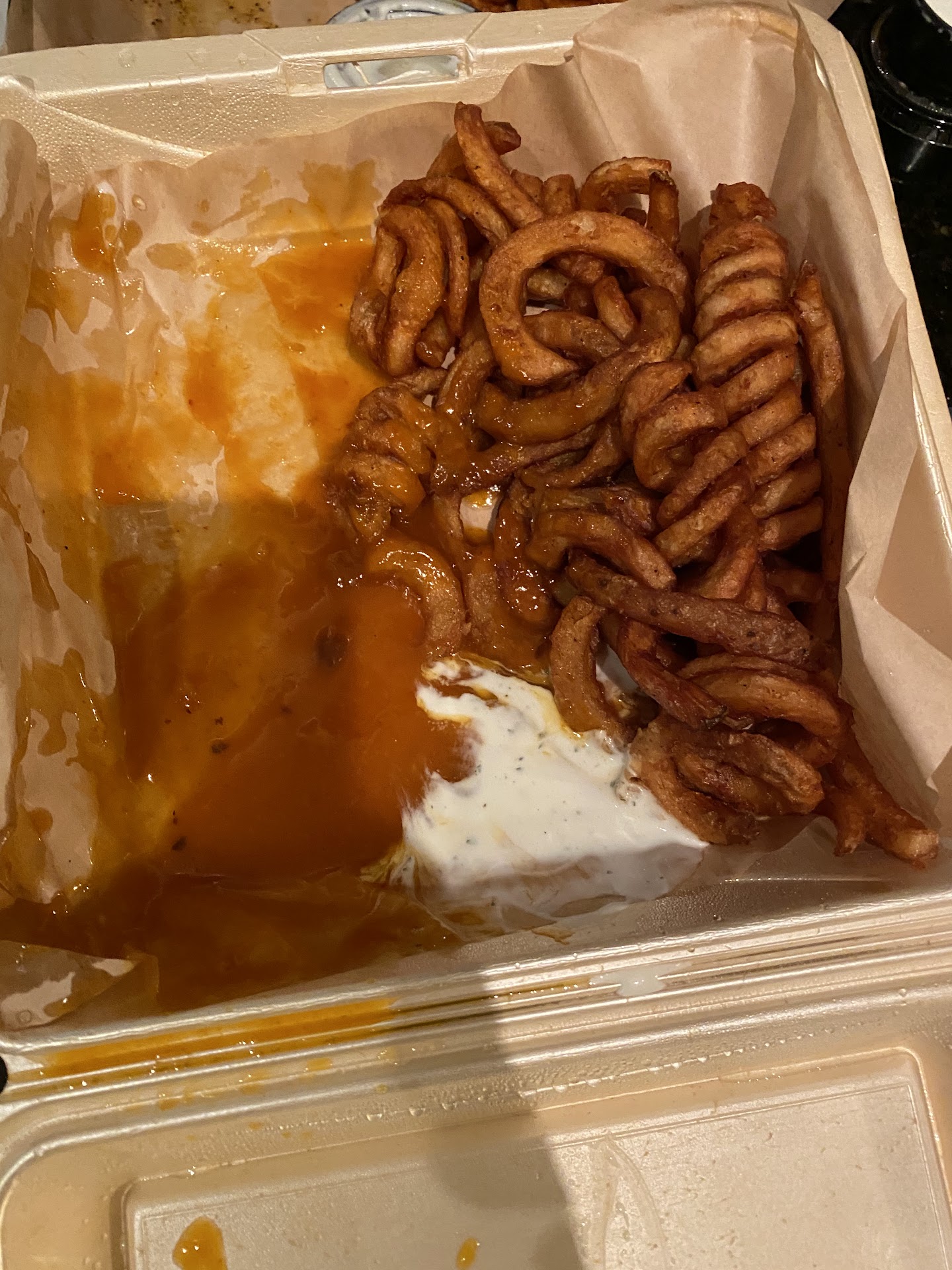 Read moreIdk what needs to happen but whoever is cooking these wings needs to be either A. RE-trained or B. Fired, because they are rushing and not making sure the meat is properly cooked, of course the sauces are good its a sauce but the wing bones break into pieces and the fries were stale, and this shouldn't even have to be said but (nobody likes their dipping sauce hotter than the chicken, quit putting them in the box with steaming hot food on delivery orders), this place is definitely a hit or miss and more than not it's a miss they just trying to make money and don't care about nothing else and also yall should put that this is coming from chilis this location should just...