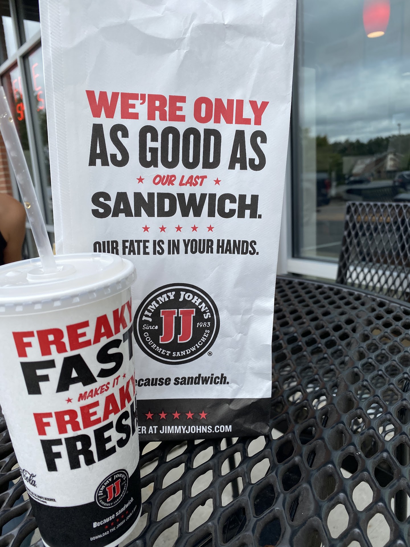 Read moreThis is by far the worst Jimmy Johns establishment I've ever been to. They gave us not one but 3 sandwiches all with bright green on the bread. Then they tried gaslighting us, saying it was "the lettuce turned it green." However I spoke to a former Jimmy Johns manager who said in his 3 years of working there that has never happened. That they were spouting BS and lettuce doesnt do that. You throw out so much bread at the end of the night and you couldn't make me a fresh batch???...