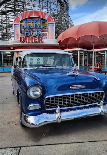 This place has some good food. We come to this park as a family at least once a year for a few days and we eat lunch here often. Our season passes get us good meal deals but there is a trick for a free milkshake. When u go in here yell JUKEBOX loud enough so the workers hear it and they will give u a free milkshake. Tried and it works . The burgers here r really good and so r the fries. Some entitled jerk parked his big blue caddy right in front of this place instead of using the parking lot. I took plenty of pictures of his car to show security so they can tow it 😂. It’s a good decoration 😂, this place could definitely use some indoor seating like retro booths like cedar point and dorney offer at their diners. Kings dominion, carowinds and kings island all have jukebox diners and don’t have indoor seating which could benefit them a lot. We will definitely be coming back again. And don’t forget to yell jukebox for a...
