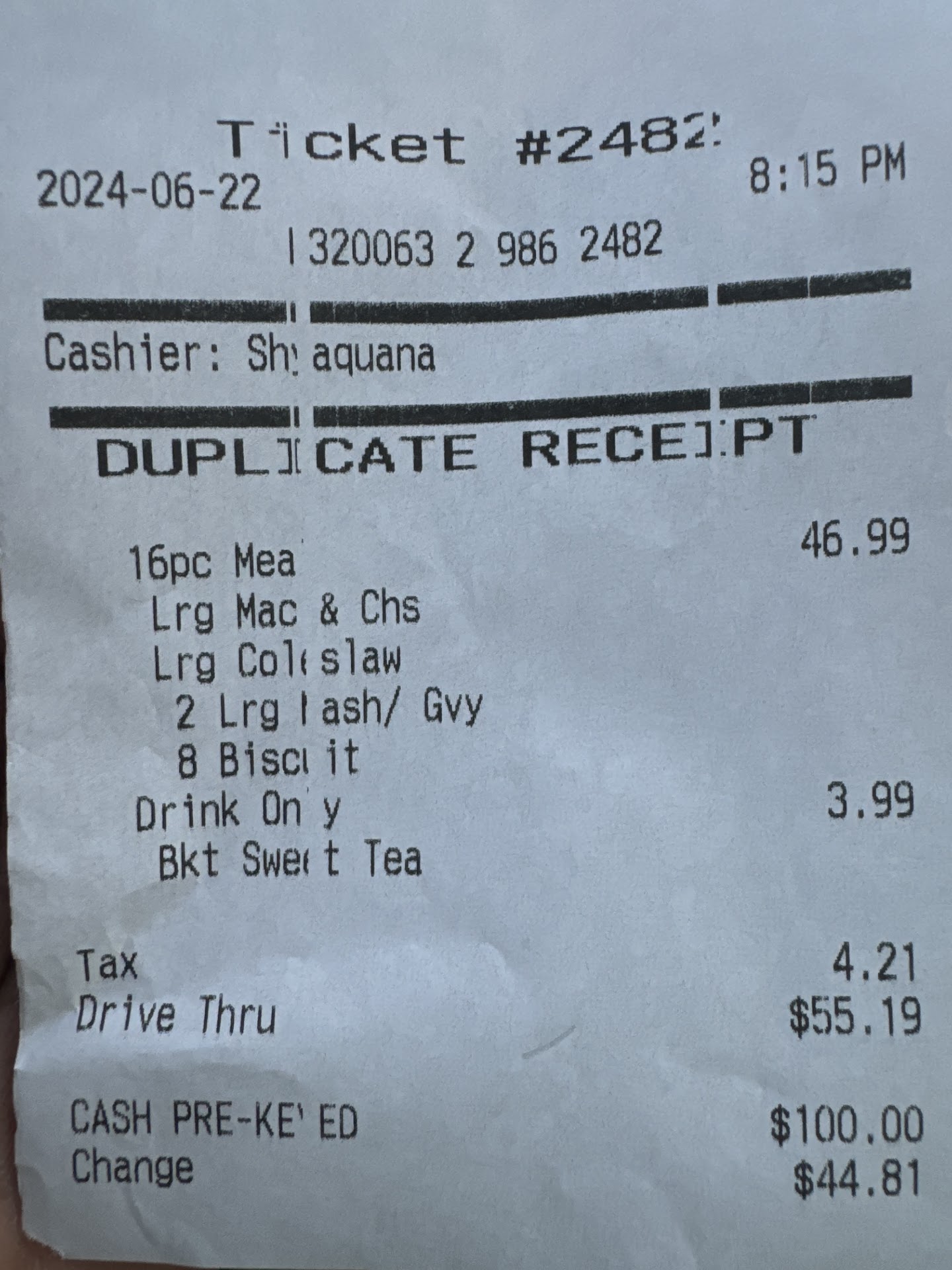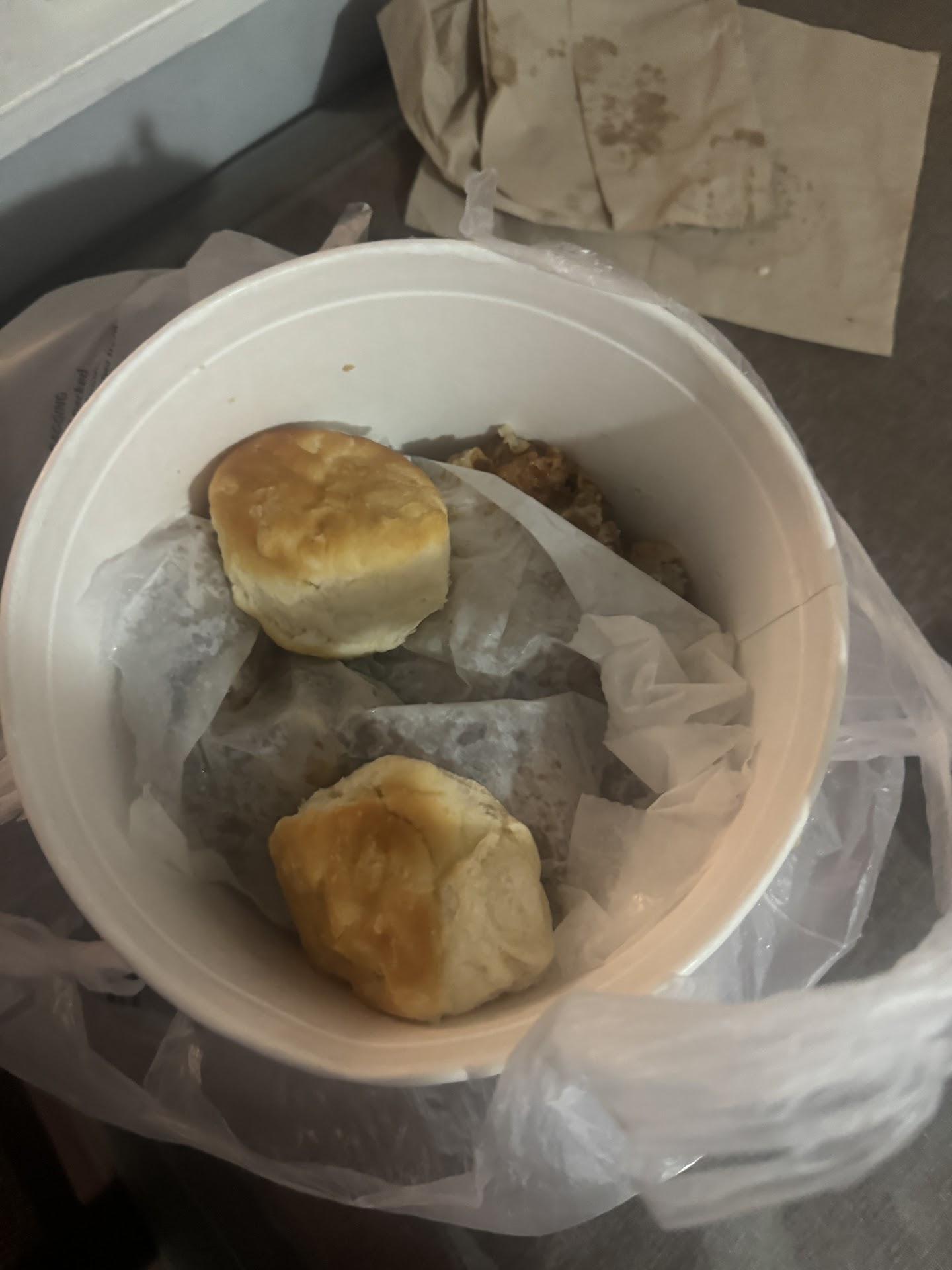 Read moreI go to this specific location 6 miles from home because it is the closest one. Service and food has declined tremendously throughout the years. Today we needed two separate orders which was not allowed in drive thru for some reason. So I ordered a 6pc $20 deal plus a classic sandwich meal, drink no ice. Get to the window drink is full of ice, then instead making us a new drink cashier just poured out half of it out and fill it up handed me back a dripping cup. I was asked to pull up since chicken was 10 mins out . I asked for the classic sandwich combo and I am told I’m also waiting for fries. I pulled up, go inside to order our second order. After 15 minutes we get both orders, the fries were cold. I handed the cashier back the fries, since we were waiting on fries I shouldn’t have cold stale fries. He looks at me like I’m crazy and with an attitude get another order of fries from the store manager who was the one at the kitchen line. I leave get home and was horrified. The fresh chicken we waited for was mushy and falling apart, the corn was so old it was black and dried. The macaroni and cheese had dried up pasta and cheese in it, the famous bowl from the second order had literally 4 little pieces of chicken just thrown in there didn’t even cover the top of it how it should have. Only two biscuits instead of the 4 we usually get. We spent $50 dollars over all and it was just worst then mediocre food and worst service from the guy at the drive thru. What made it all worse is that all this food was packed by the store manager who was in the line. Needless to say we will not be coming back to this location even if we have to drive 30...