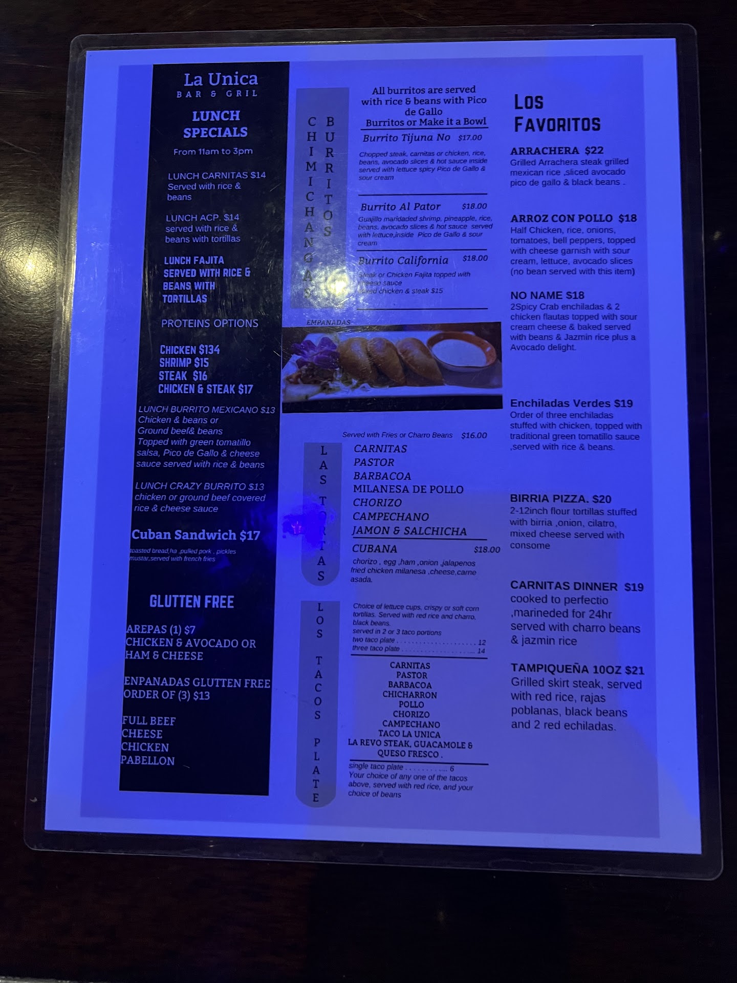 Waitress was slow to getting our drinks. Even just for a shot of tequila it took 20min. My friend order their special margarita flight and couldn’t tell which flavor was which. Also the waitress didn’t bother telling her which one was which. I ordered a passion fruit margarita which took 30min to come out. Was happy they gave me a complimentary house margarita for my wait but still. Once again the restaurant was not packed.