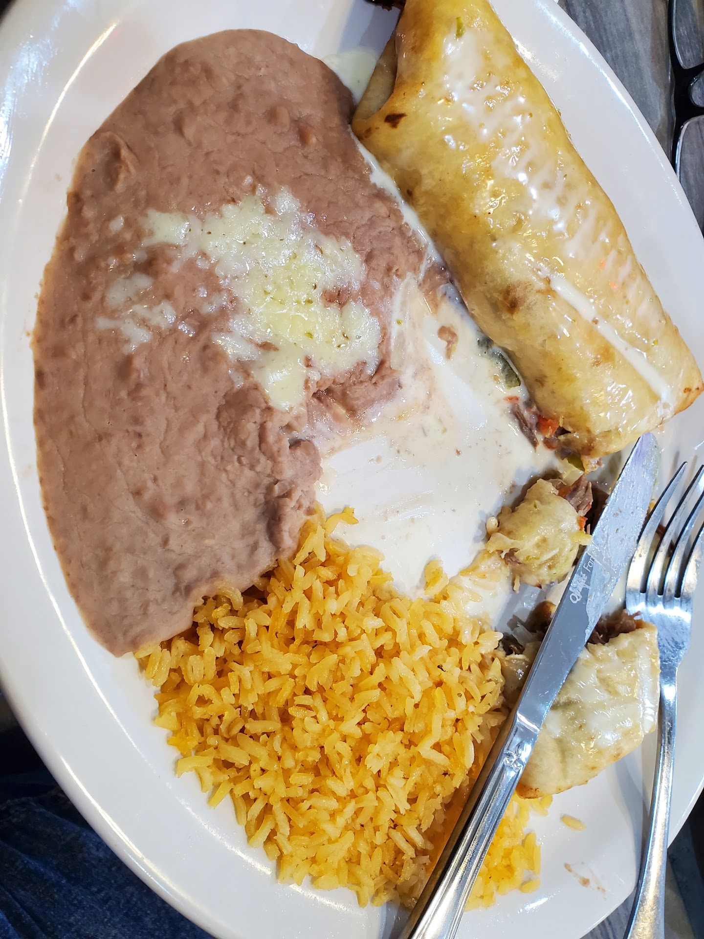 Read moreThe service was excellent, staff was inviting immediately upon entry. The place smelled freshly cleaned and seating was plentiful. Now, let's talk food. The menu was vast, containing many options other places remain minified. My family and I were having a hard time deciding since there were options 😉. I ended up getting the 2 Chimichunga dinner( 1 chicken and 1 beef) with rice and beans, in this picture I forgot to take before consuming 3/4 of the beef which by the way was fantastic and don't get me started on the chicken 🤗 which was all white and well portioned meat! If you're looking for a good meal and great experience and service rivaling meals here in Charlotte this is the place!! Did I mention they also have table side payments which have a tap to pay option....I'm just saying...