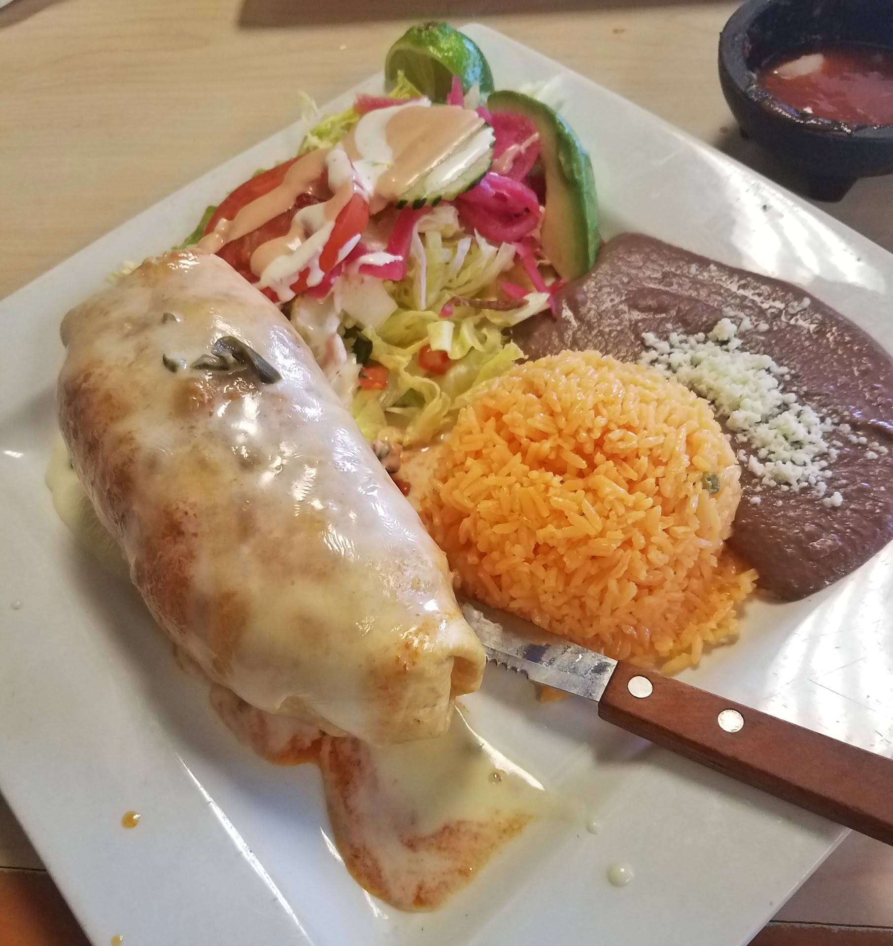 Central American-authentic dishes of Honduras & El Salvador, along with Mexican favorites. Just discovered this restaurant, so glad it’s only 4 minutes away from my home base. Had two dishes never knew existed: Honduran Baleada #5 (steak in a fresh large soft tortilla) and Salvadoran pupusas with lococo (interesting tropical flowering squash) and cheese, which comes with cabbage slaw and purple pickled onions. I HIGHLY RECOMMEND BOTH. Son had quesadilla con carne asada. The tortillas are freshly made, fluffy and lightly grilled. The steak cubes in both the baleada and quesadilla were grilled to perfection. The quesadilla was much better than Tex-Mex style—came with delicious sides: yellow rice with peas, pickled onions, bean mash, and a crispy iceberg salad with cukes, tomato, avocado and a French dressing with crema that was a great combination for a salad. Service was friendly and fast even though there was a dinner crowd. Presentation of the dishes was well-done. The restaurant also has Latin sides you won’t find at a typical Mexican restaurant like plantains and yucca fries. Flavors were fresh and light. Jan 2019 visit. Can’t...