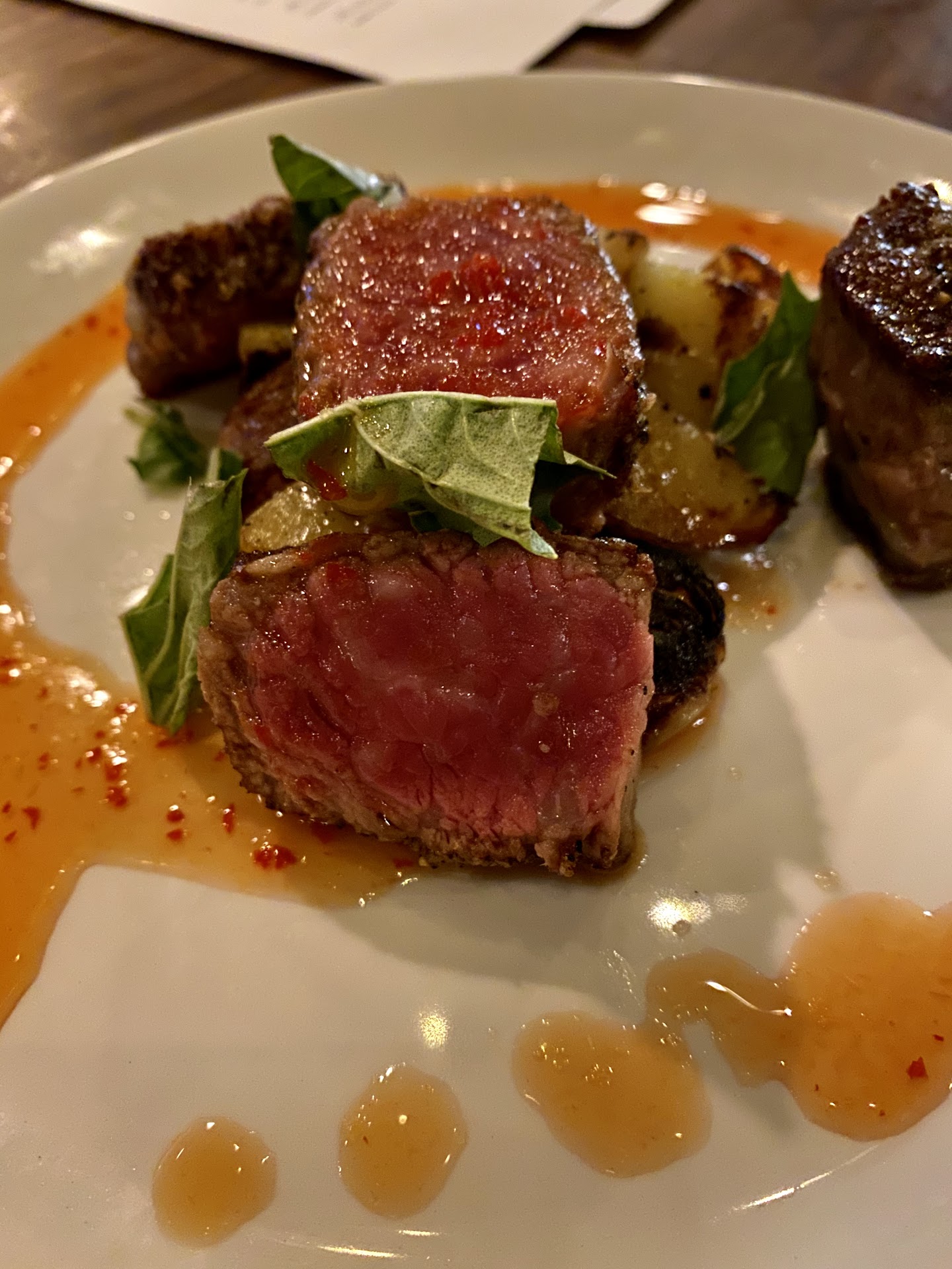 Ordered our appetizers as soon as we were greeted. Those ended up taking 21 minutes. Tartar and bread. The apps were on the table when we ordered entrees. We ordered those at 7:57. So there wouldn't be any need to course that, because we were already eating the appetizers. That being said, I couldn't tell you what happened. We didn't get our dinner until 8:52. And not a single person acknowledged that. FIFTY FIVE MINUTES after ordering. Our server didn't apologize for the wait. Even if she chose not to apologize, she could have at least let us know she was aware. I've never worked anywhere where a manger wouldn't have been notified, 100% done at least a table touch, and likely offer something as an apology. Who wouldn't be a crab ass by the time the food came? The entrees were decent. But waiting that long is only going to raise the expectations for quality.