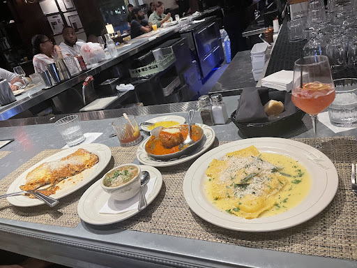 Speed to table for appetizers? I was surprised it came out so quickly! The rolls are very good and light. The olive oil, wish they would put or offer to put, some grated cheese in it and maybe some parsley. If they dressed up the oil for the bread, inexpensive quick, bump. I am going to try as best I can to put my favorites in order because I ordered so much food - and it was just for me. Top of the list? That crabcake appetizer. Amazing! sauce on the side that you could dip the crab in? Wonderful! I squeezed lemon over my crab cake because I love lemon and it was just beautiful. I really expected a lot of breadcrumbs? Not the case and that was a great thing! It was fresh, it was light, it was creamy, but it was so flavorful. Definitely put lemon on and use the sauce. My next favorite? The goat cheese, mascarpone cheese with the big slices of bread?! Oh my goodness. Really beautiful!! Soooo flavorful!! I could eat it on pasta, bread, veggies and actually DID put it on the Beef Pork meatballs!!! Prime Beef Pork Meatballs I’m putting them next ONLY if you pair it with the above goat cheese mascarpone spread. The meatballs are fresh and good texture but a bit plain. They were going to move to the bottom of my list until I got the brilliant idea to put some of that goat cheese mascarpone over it?! I told my waitress that it would be a wonderful suggestion to pair the two. Stracchiatella Dip, artichoke salad side? Loved artichoke salad. Highly recommend it all on its own. Quite honestly? Not a fan of the cheese dip only from the perspective that they used an extra-virgin olive oil. I felt it overpowered and skewed the flavor of the cheese. I really didn’t taste any lemon zest, but loved the pistachios by the way. So I think in my personal opinion - for what it’s worth? Would have doctored that up a bit - do NOT go with the extra-virgin olive oil. It takes away and actually lessons the flavor. So THAT was probably my least favorite thing, but I ate it! It is a personal taste is all I’ll say. Now to the eggplant Parmesan! I opted for an extra side of the brussel sprouts with it. The brussels good!! In addition to pasta but eggplant Parm blew me out of the water! If you get nothing else but that dish as your meal? You will be full! It was so cheesy, loved how they breaded and fried the eggplant. But that roasted grilled cheese flavor - just SOOO totally came through. If you’re looking for something light? This is not it. But if you’re looking for something rich and flavorful and comforting?