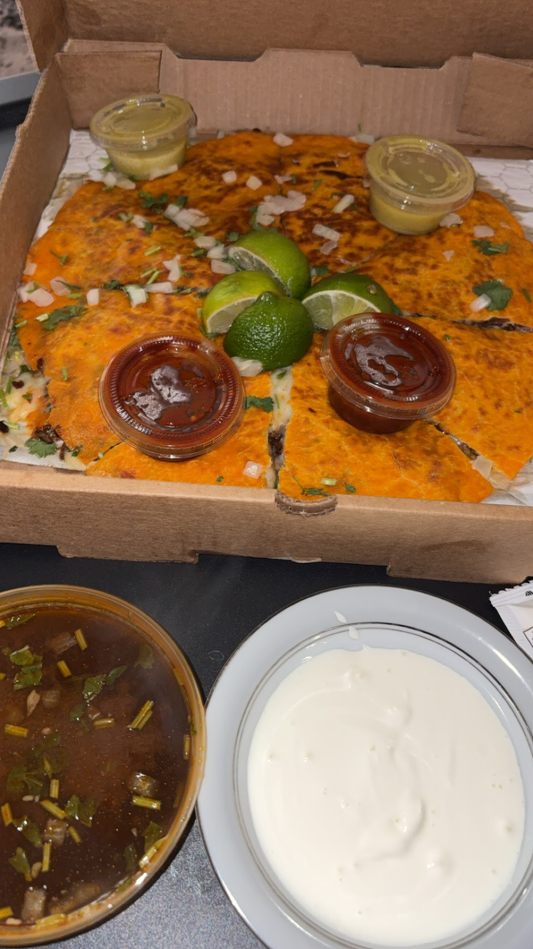 Service and atmosphere do not apply. i had it delivered with Uber Eats. Yes, I ordered very late (1245am), but they were listed as open, so I expected a nice big plate of Flautas. They were the smallest I've ever encountered and for the price absolutely ridiculous. I asked for extra sour cream, and that didn't happen. I ordered refried beans only to get mushy black beans. The biggest insult was the churros. Literally one churro broken in half, and they charged what you would typically get 4 or 6 full ones. The biggest disappointment was the food quality. The flautas had only a miniscule amount of chicken that I had to look hard to find it. At first, I thought they were empty, just the tortilla. Visiting from Buffalo and getting stranded after flight was canceled, but I figured I'd warn others before they make the same mistake I did. Spent $ 30 some dollars for a $7 dollar...