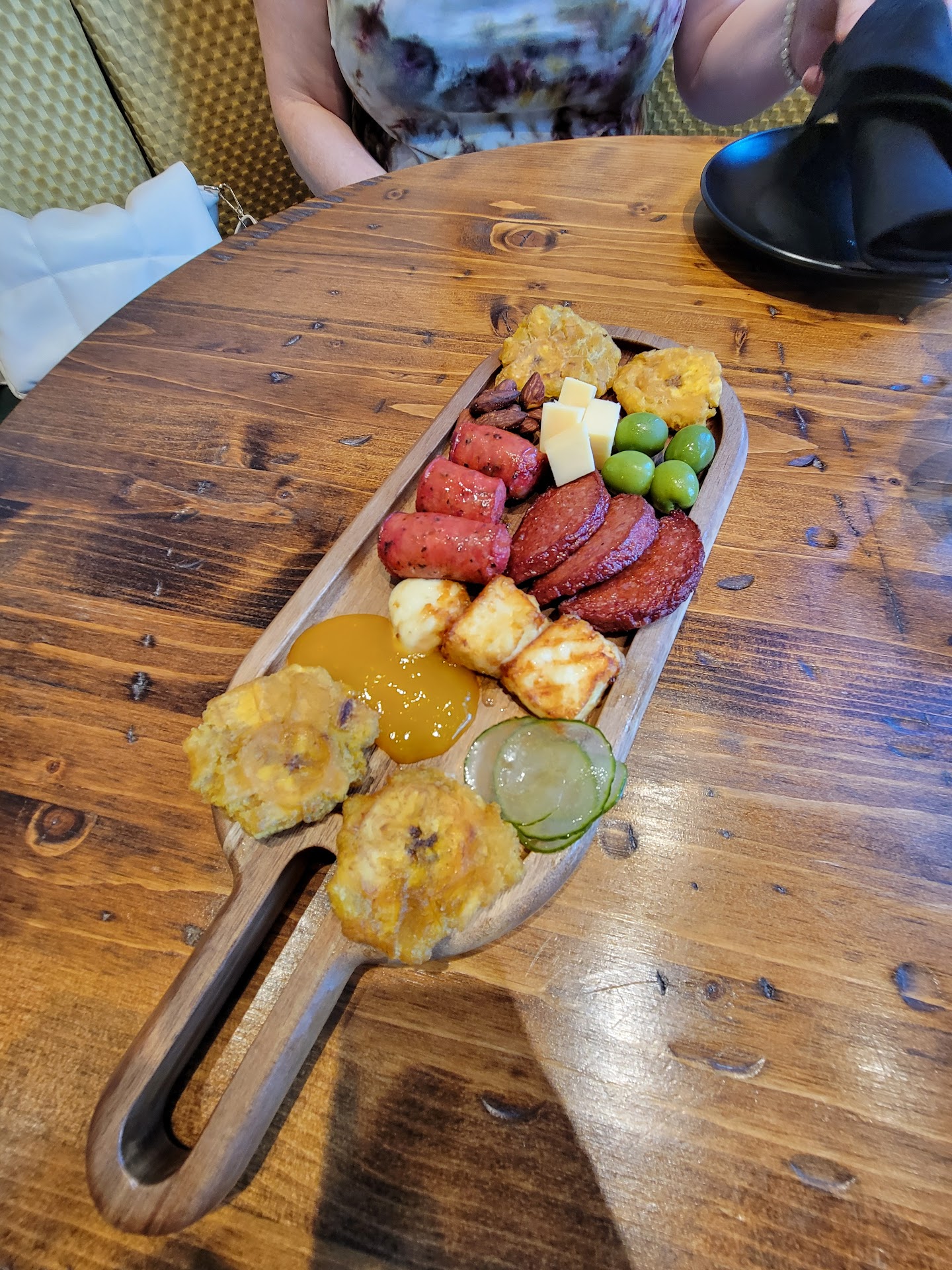 Read moreCute little vibe! We decided to try this place out with a couple of friends. Upon arrival to our reservation everyone was so nice and friendly. It did however seem a bit understaffed which we had no issues with considering they have just opened and we understand the service life. The food and drinks were on the pricey side but seemed like Latin bar food to us. Our table ordered beer, a glass of wine, and a cocktail. The wine was a heavy pour which in no way was a complaint. The cocktail was a bit on the weaker side considering the cost ($15 per cocktail). For appetizers we ordered the Quipes, Ceviche, and Charcuterie board. Quipes was good but not memorable, the green sauce we chose might have not been the best option for it 3/5. Ceviche was good but we only were served maybe 6 chips. It was a decent size and wished it had a little more seasoning/flavor. But from what we did taste it was very fresh & refreshing 3.5/5. The charcuterie was the star of the table! 5/5 everything paired so nicely together. I’m pretty sure the board had nothing left on it, not even the jam. While we were dining, we witnessed someone not having the best experience with their food (entree) so we decided to order sandwiches for our main. We ordered the Pescado Frito and Pollo Ripiao. The fish sandwich, THE CRUNCH, I am a texture person and I LOVED the crunch/crisp that was achieved. The flavor was there, I did have maybe one piece that was overly salty but did not bother me. However, I felt like the sandwich could use a bit more sauce. Both sandwiches also fell apart very easily. 4/5 definitely ask for extra side of sauce. The side of chips were the chips missing from our Ceviche. It was boring and I would recommend to swap with something else; which they don’t offer many sides. Chicken sandwich is just your regular sandwich; lackluster. Again, fell apart as well. The bread was a bit too hard for our liking 2.5/5. Overall rating would be a 3/5 if it had not been for the 2 stars of the table which were the fish sandwich and...