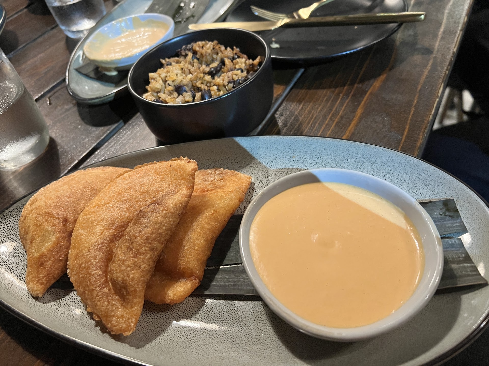 We started with the Empanada Cativia, a trio of cassava empanadas filled with pernil (pork), ropa vieja (beef), and charcoal-roasted chicken, served with a creamy, slightly smoky rosada dipping sauce. The ropa vieja was the standout, bursting with rich, savory flavors. The pernil came in second, and while the charcoal-roasted chicken was tasty, it could have used a bit more seasoning to really shine. The rosada sauce was so good that I kept dipping into it throughout the meal.