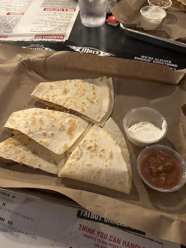 We had to go to the back near the kitchen to explain how our orders were wrong and after a few minutes, our server, and who I think was the manager came to ask what the problem was. We explained how none of them had bacon and they then took the quesadillas back to fix them leaving just my friends quesadilla who was made correctly to get cold while we waited. I asked for hush puppies while we wait for food to be corrected, but they must have forgotten because they didn’t bring them out until we were almost finished with the corrected quesadillas.