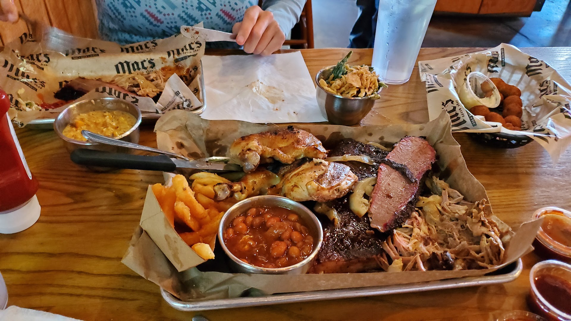 For the meal we ordered the Platter Combo A Lot of Stuff. For that we ordered the Pulled Pork, Prime Brisket, Beer Can Chicken, and the St. Louis Ribs
