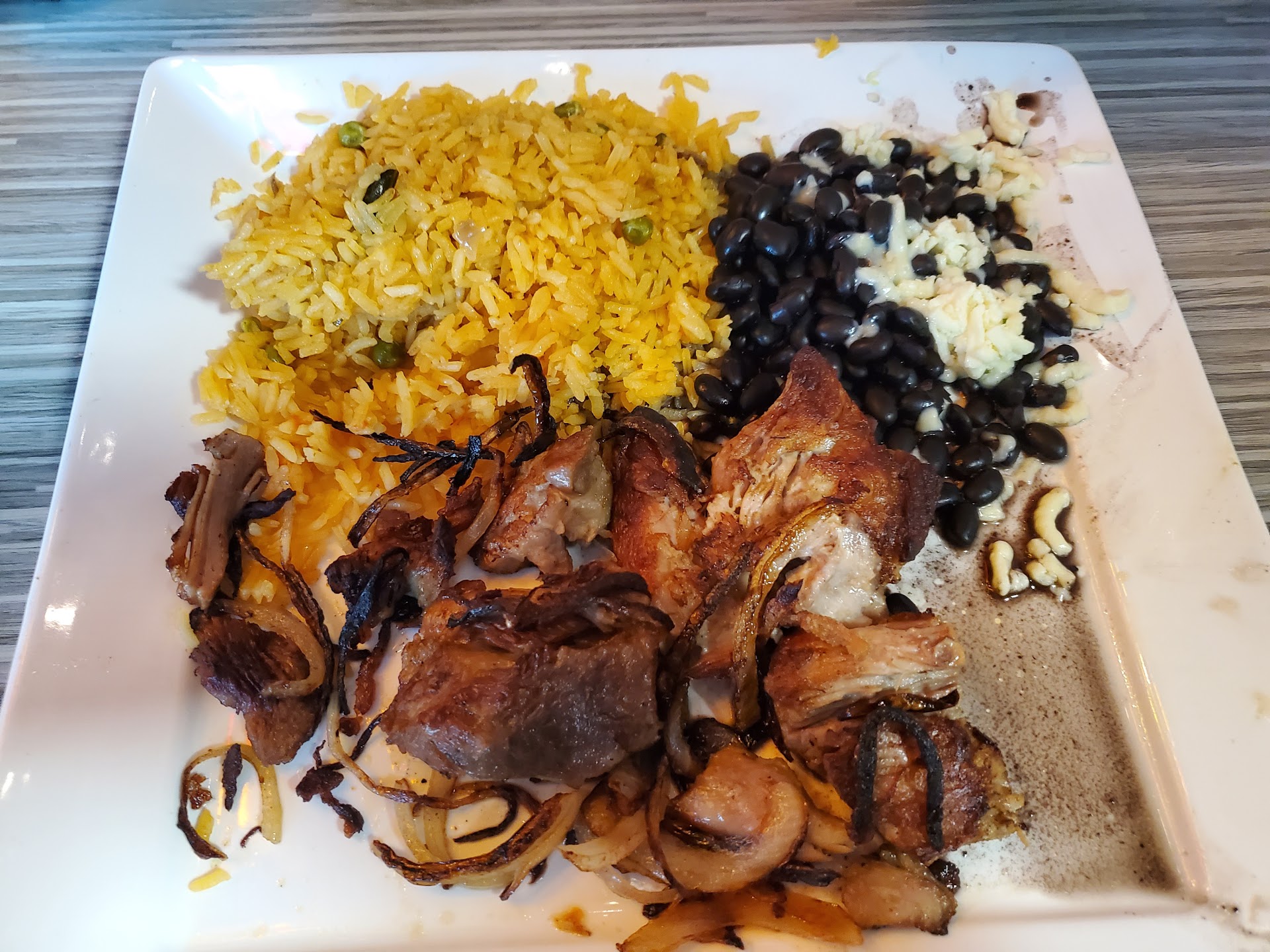 I ordered the Hawaiian quesadilla with chicken, with the guac salad and refried beans as sides. The food arrived fairly quickly, but it was the Hawaiian chicken fajitas (which was NOT sizzling, by the way, and $6 extra). My sides were correct.