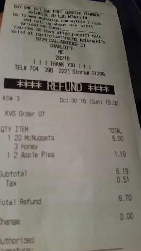 McDonalds /Charlotte nc Northlake mall location/ near 485 loop south