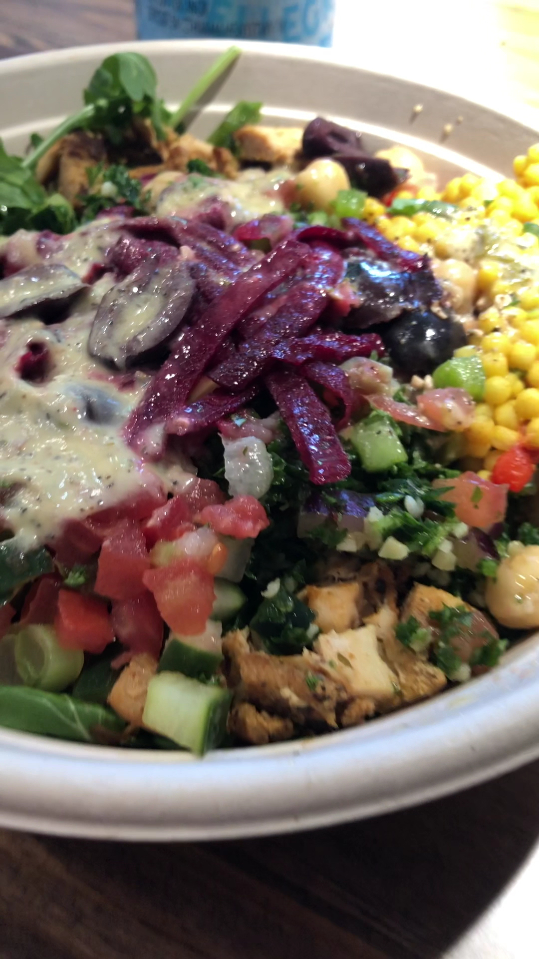 My husband chose veggie Kufta & I went with the chicken Shawarma as my protein. I love all the colorful options! After a man, he kept smiling, I didn’t catch his name, took care of our protein choices, the other employee, a woman proceeded to add other toppings & then cashed us out. I wish she would smile, speak to us a bit. Something. She may have been tired. I always take notes about friendly employees. I believe the people are part of a food experience. I’d like to go back & try again. When we finally got around to eating. We enjoyed the flavor profiles and the bowls are really filling. I actually couldn’t finish mine, so I had it a few hours later. My husband always keeps a cooler in the car and we added some ice so it stayed fresh. The next time you are in Optimist Hall, give them a try. you can’t go wrong with this healthy mediterranean option! Update! Brought some out-of-town guests to Optimist Hall & I’m so glad we all agreed to eat here. Everyone...