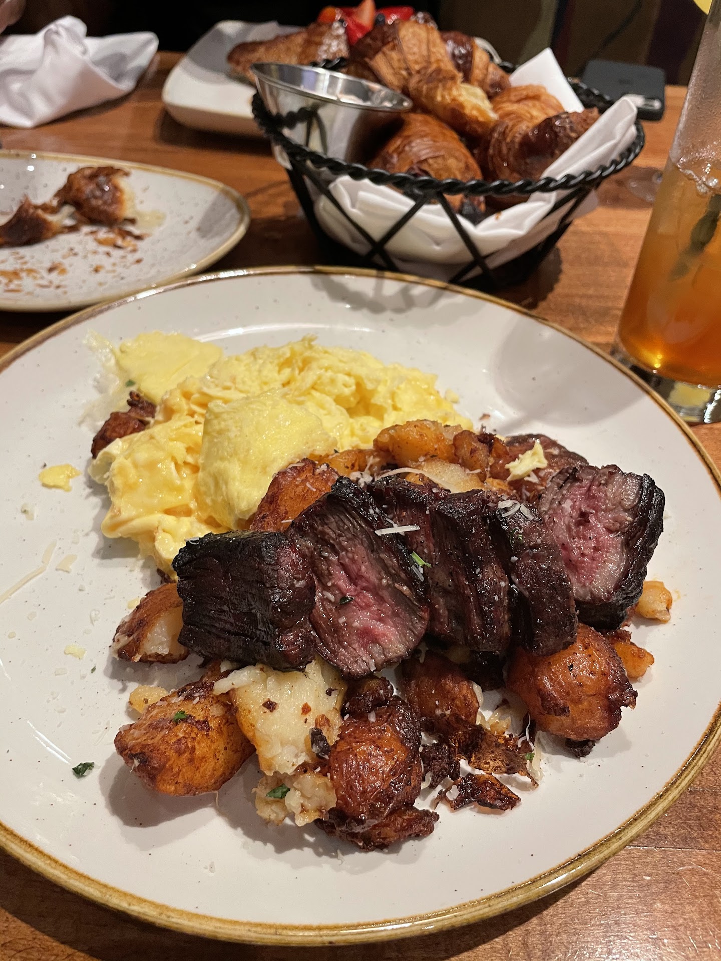 Read moreOne star because the food was good but the system was down so they didn’t have some peoples reservations and the manager stayed on the edge with the smart mouth. Luckily my daughter had a picture of her reservations because he just automatically assumed she hadn’t sent her contract back because she wasn’t showing up on the screen when he should have just said simply our system is down all reservations aren’t loading and in the end they were having to write down everyone’s credit card number and save until the system comes up when they should not have been operating. Shoutout to the cooks and the cooks only but we will not be returning here ever never again. The manager was rude and unprofessional. My daughter asked a question about the tip on the receipt he automatically responded “You signed a contract didn’t you read it” my daughter stated that she talked to someone on the phone and he snapped with another smart remark need I remind you this the same guy that automatically assumed she hadn’t sent her contract back in. The energy he gives is you aren’t welcome here and thing is this isn’t no five star restaurant and the health score was 93 yea I look at those things being I’m a personal chef and culinary school graduate and I’m serve safe certified lol and oh yea the mimosas we ordered was bitter and nasty they took them and stated they used fresh juice they were still nasty don’t waste your money here you will have a better experience at Famous Toastery across the street. Once that manager the short one learns how to talk to customers your business will flourish but after today your business will decline and I don’t see this restaurant staying around too much longer cause if I’d known my card number was gonna be written down once we came I would have left. The food is descant but that’s all and I don’t recommend African Americans to come here. Tips are automatically added so waiters don’t have to treat you special because their fare is automatically added...
